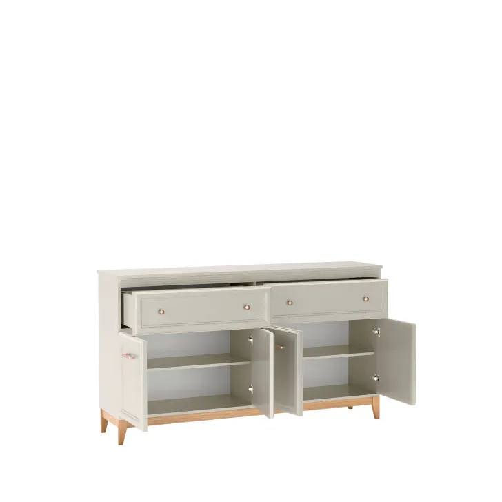 Niezwykła dbałość o szczegóły i wysoka jakość wykonania komody DUBAI 2 przyciąga wzrok i sprawia, że ten mebel jest nie tylko praktyczny, ale i piękny. Stabilne nogi z litego drewna dębowego gwarantują jej trwałość, a naturalne piękno drewna doda twojemu wnętrzu ciepła i przytulności.