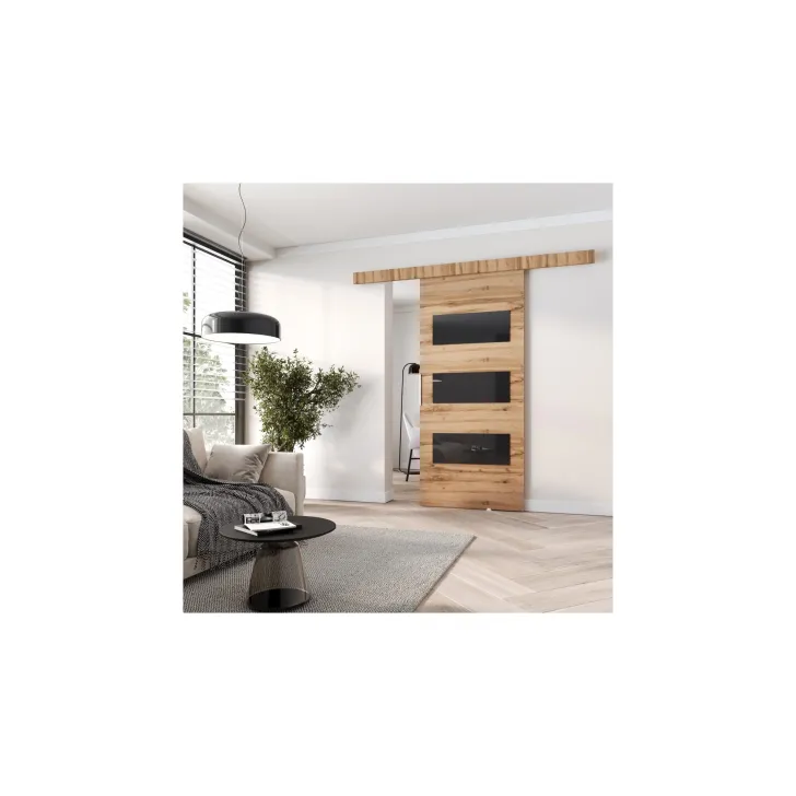 Dostępne w szerokiej gamie kolorów i wzorów, te drzwi przesuwne są wyborem dla każdego, kto szuka indywidualności. Ich front zostaje udekorowany eleganckimi czarnymi panelami ozdobnymi (szkło lacobel), które nadają im wyrafinowanego wyglądu.