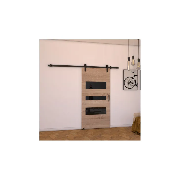- Drzwi wyposażone są w dwa czarne uchwyty wykonane z tworzywa sztucznego – to praktyczne i estetycznie wykonane dodatki, które podkreślają charakter drzwi.