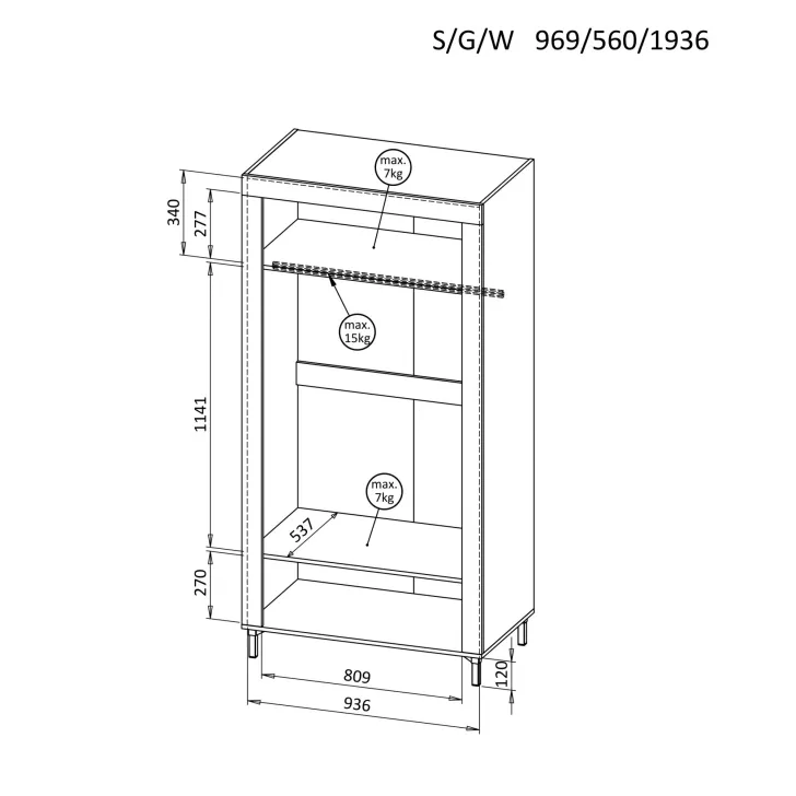Metalowy drążek jest maksymalnie obciążalny do 15 kg, dzięki czemu bez problemu pomieści Państwa garderobę, nawet tą cięższą.