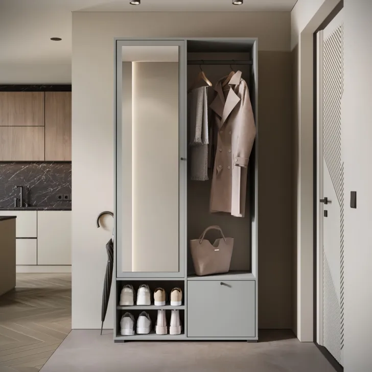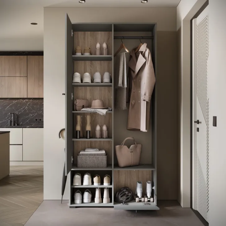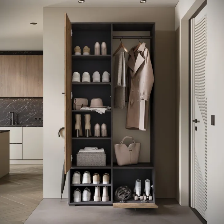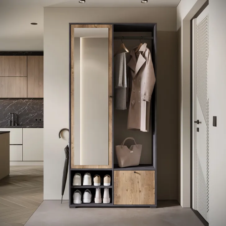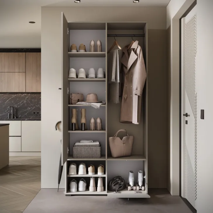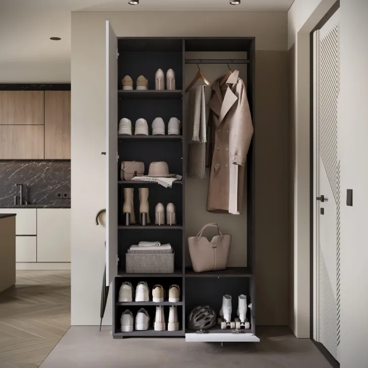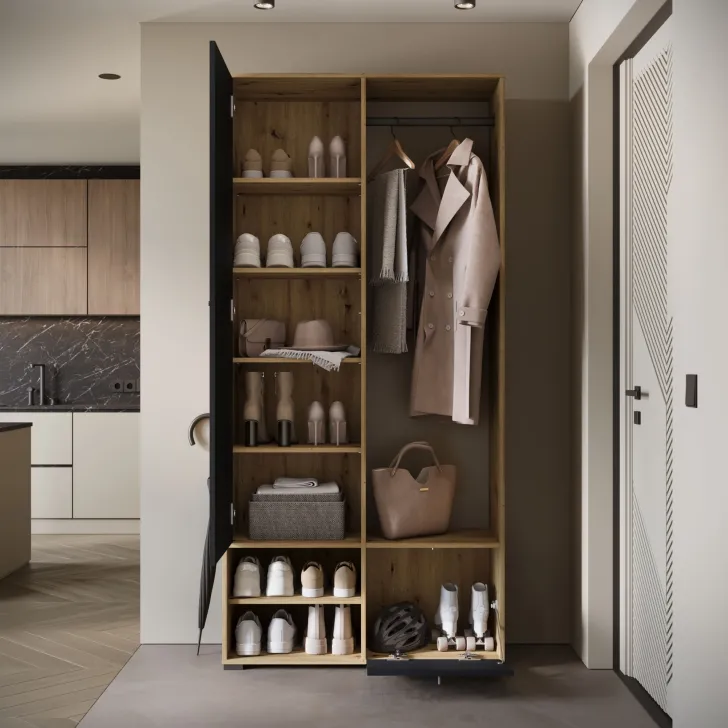• Otwarte wnęki i praktyczna szafka na buty