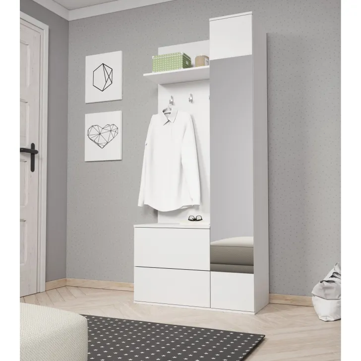 - Praktyczne i dostępne półki zapewniają dużo miejsca do przechowywania, które można wykorzystać na buty, kurtki i wiele innych przedmiotów.