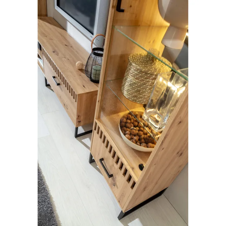 Niezaprzeczalne wdzięki szafy MELLE 2 potęguje jej wyjątkowy design, utrzymany w modnej kolorystyce dąb artisan. Wszystko to sprawia, że szafa MELLE 2 to nie tylko mebel, ale praktyczne dzieło sztuki, które nada Twojemu pomieszczeniu niepowtarzalny charakter.