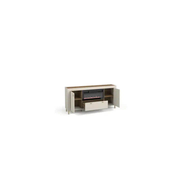 Co warto wiedzieć o Komoda "ASSO 7" z otwartymi półkami i szufladą/kominek LED