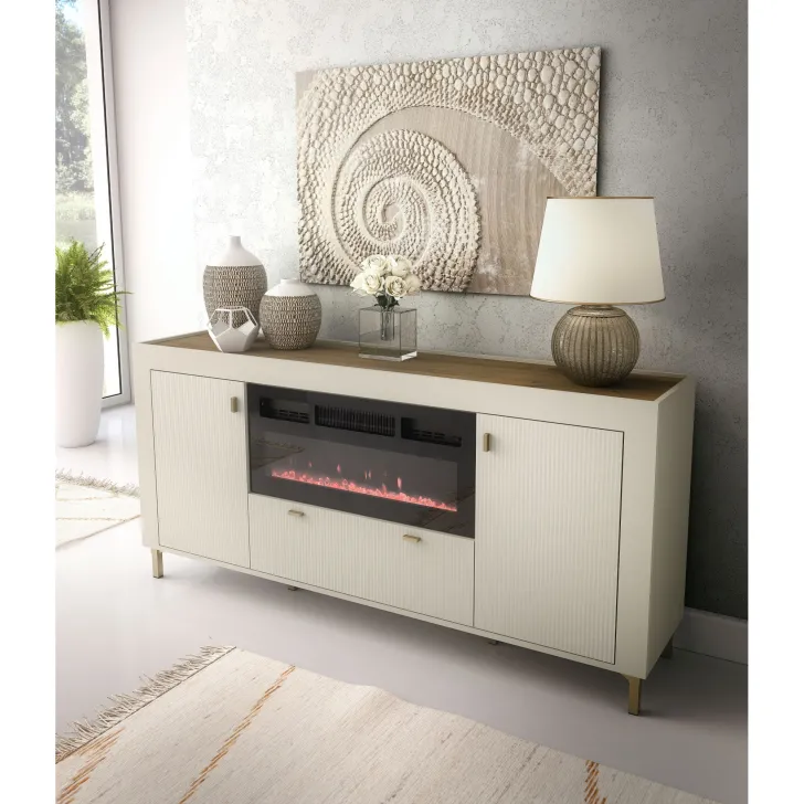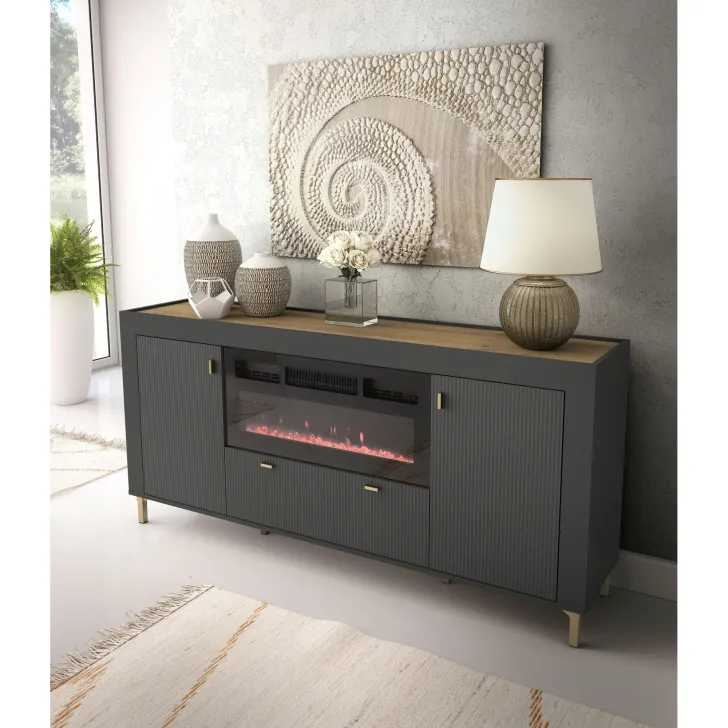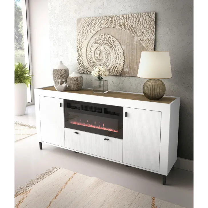 • Wyjątkowy dodatek: Istnieje możliwość wyposażenia komody w kominek LED, który nie tylko doda ciepła i przytulności do Twojego domu, ale także zapewni żywy, kolorowy płomień dostępny w trzech różnych kolorach - fioletowym, niebieskim i czerwonym.