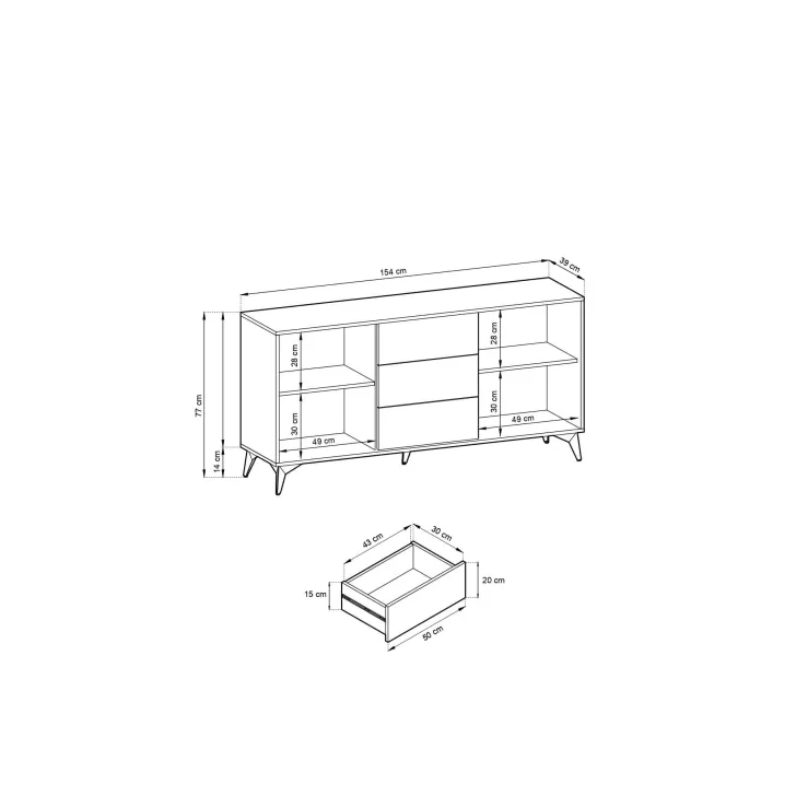 Wymiary komody DIAMOND na metalowych nogach: