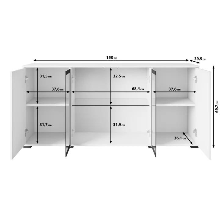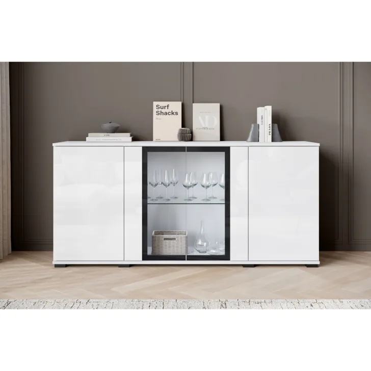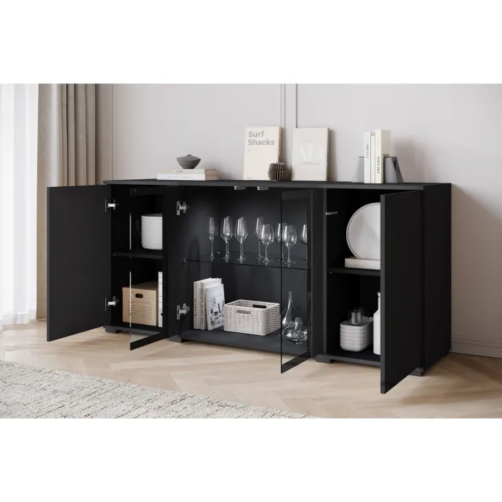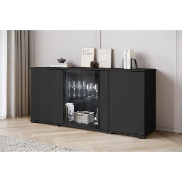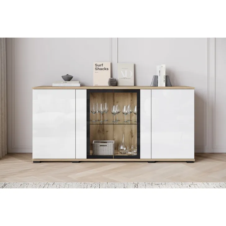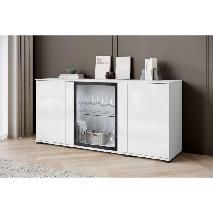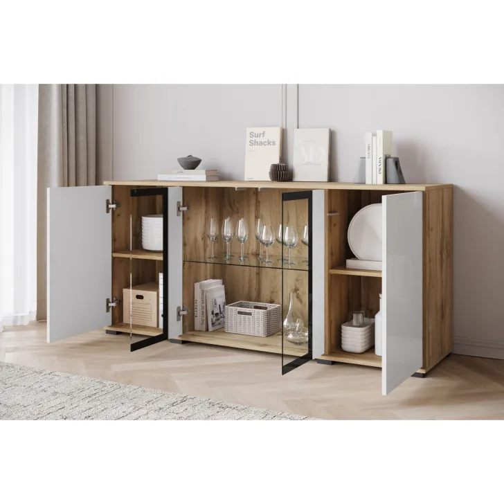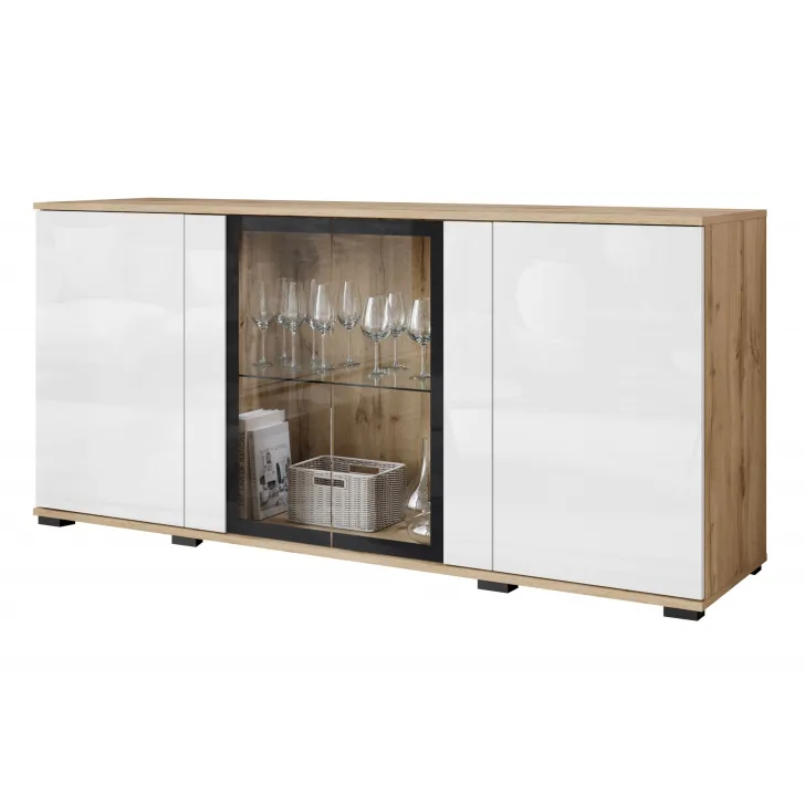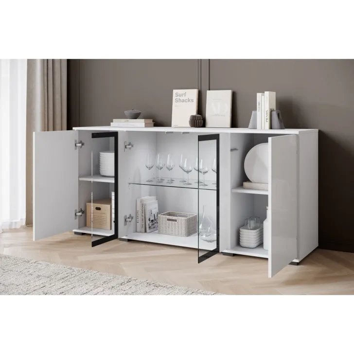 Atrakcyjna i nowoczesna, komoda FARO 154 z przeszklonymi frontami to doskonałe uzupełnienie dla Twojego salonu, jadalni czy pokoju dziennego. Ten przemyślanie zaprojektowany mebel oferuje nie tylko funkcjonalne przechowywanie, ale również pomaga tworzyć stylowy i elegancki wystrój.