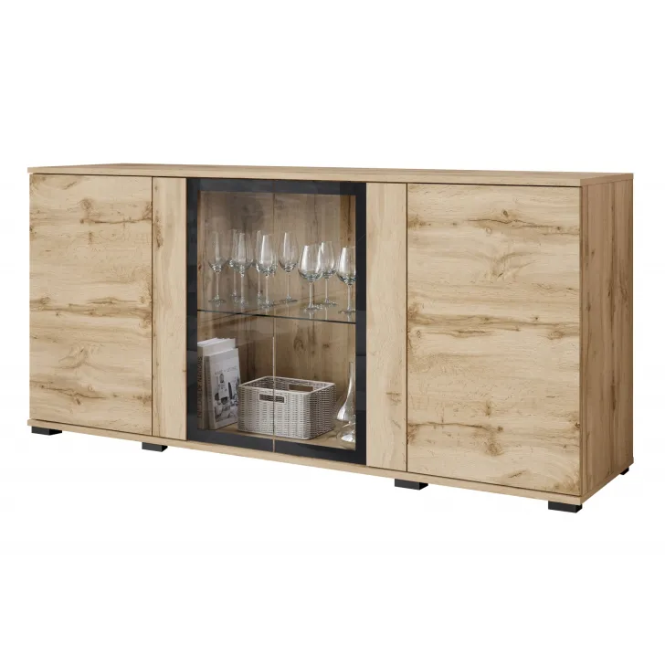 Niezwykle praktyczna konstrukcja, łącząca zamknięte szafki i przeszkloną część, pozwala na eleganckie przechowywanie oraz ekspozycję różnego rodzaju przedmiotów. Od książek, przez dekoracje, aż po cenne pamiątki - wszystko znajdzie tu swoje miejsce. Aranżację witryny możesz dodatkowo podkreślić subtelnie, dokupując opcjonalne oświetlenie LED.