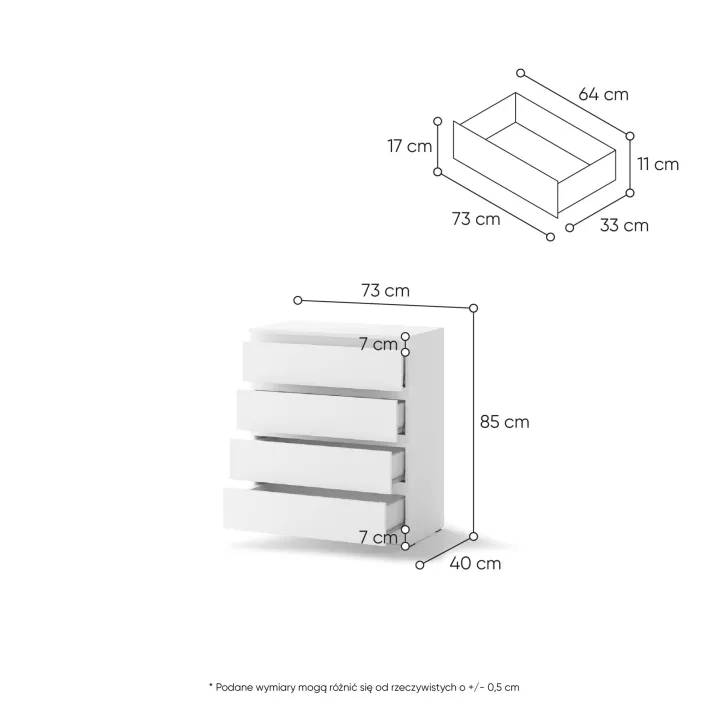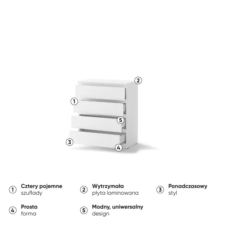 • Cztery pojemne szuflady zapewniają dużo miejsca na przechowywanie różnych rzeczy, pomagając zachować porządek.