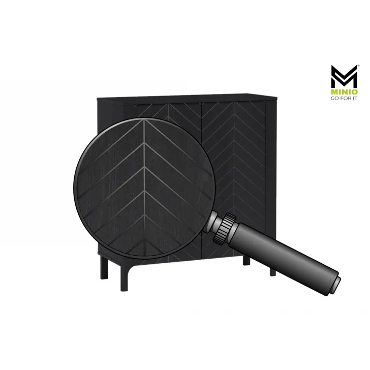 Jest to mebel zbudowany z wysokiej jakości płyty laminowanej, co gwarantuje jego trwałość i odporność na zniszczenia. Fronty komody zdobione są intrygującym wzorem jodełki, który nada Twojemu pomieszczeniu wyjątkowo przytulny i elegancki charakter.