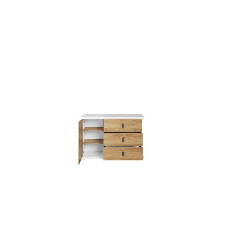 Trzy pojemne szuflady umożliwiają łatwe i wygodne przechowywanie różnorodnych przedmiotów - od bielizny, przez dokumenty, po akcesoria naukowe. Każda z nich wyposażona jest w prowadnice kulkowe, które zapewniają płynne i ciche działanie.
