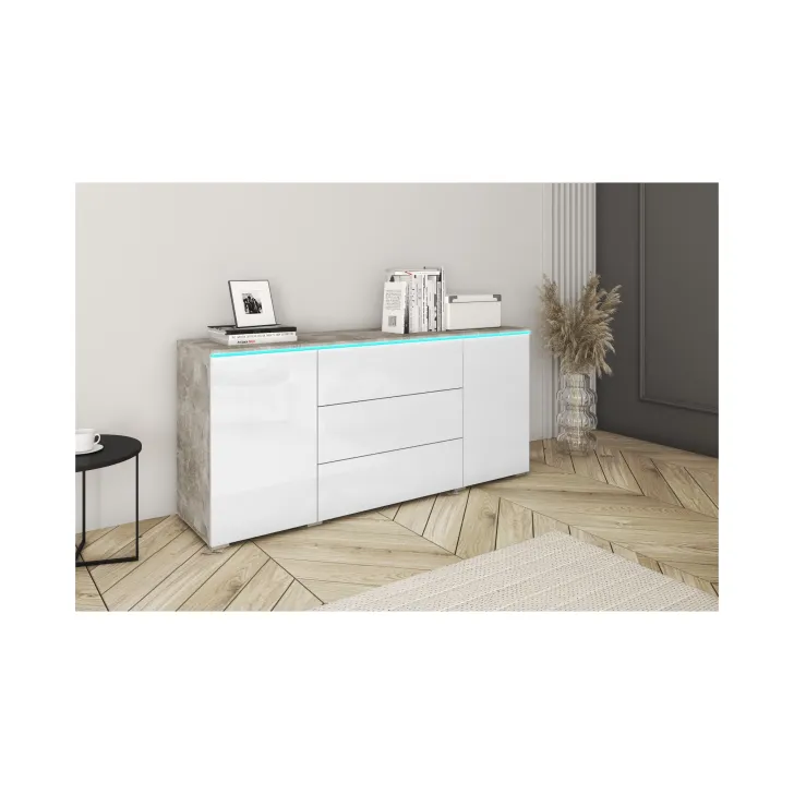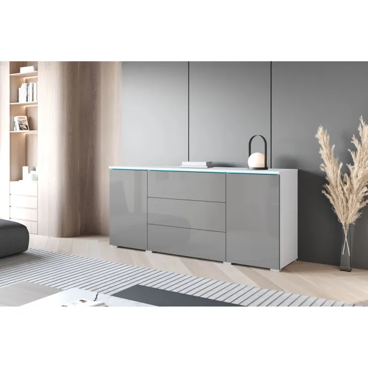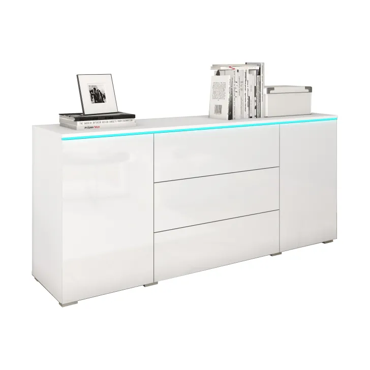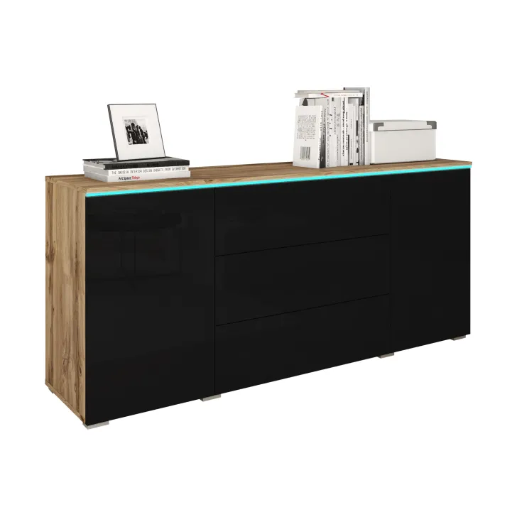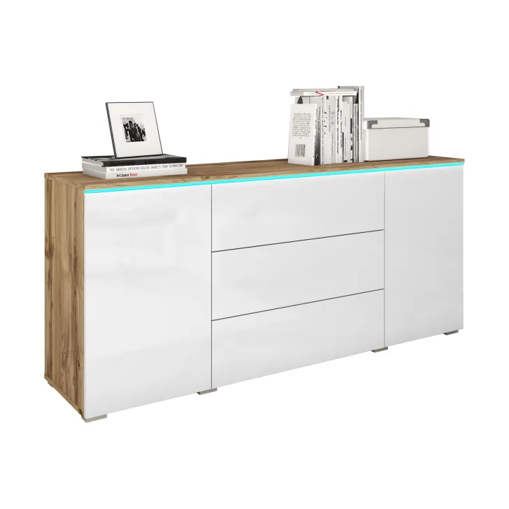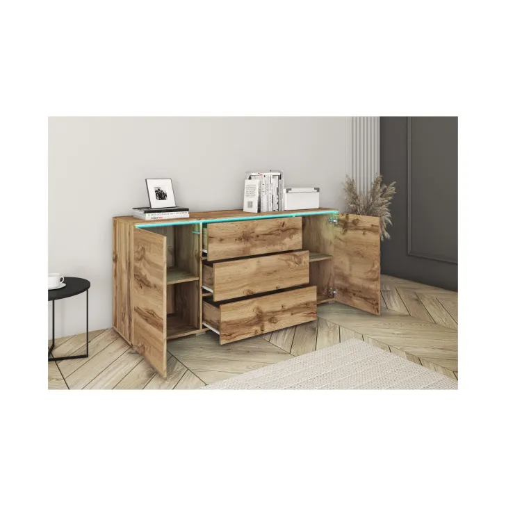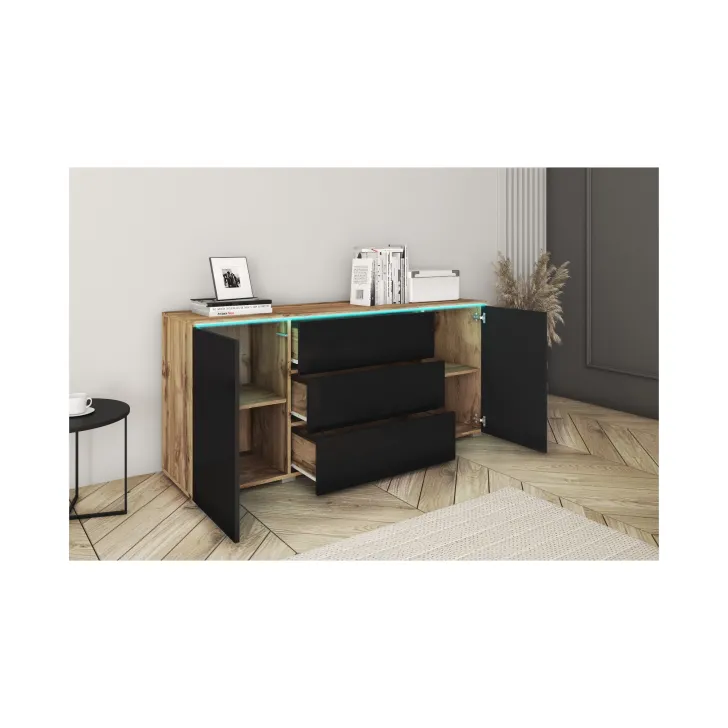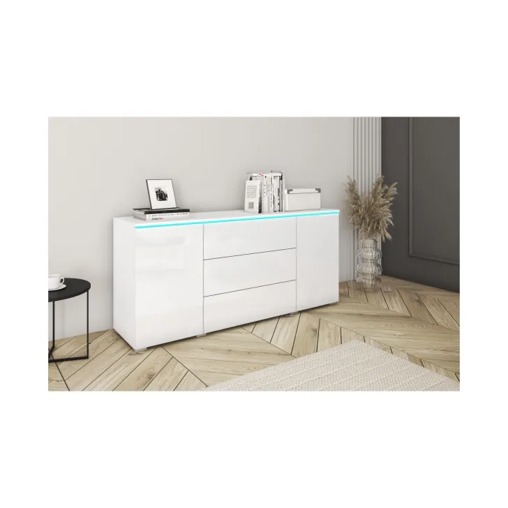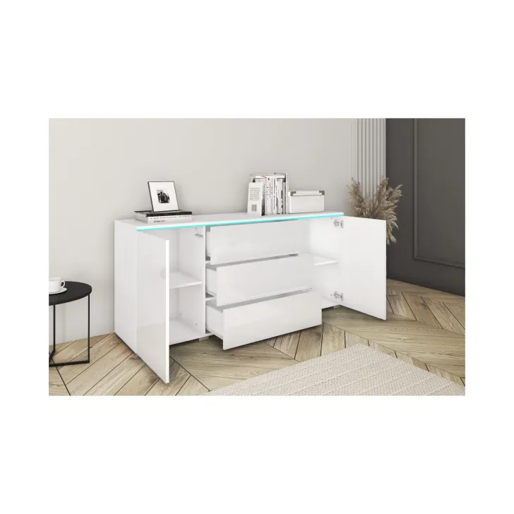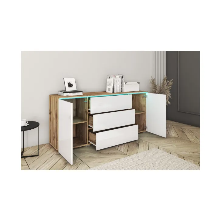 - Opcję dodatkową - oświetlenie LED (białe, zimne), które stanowi efektowne i praktyczne dopełnienie komody.