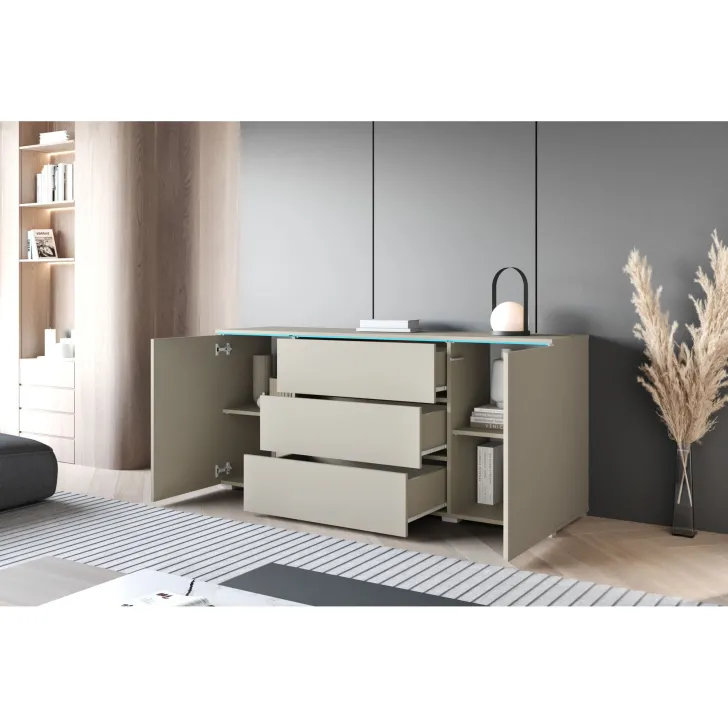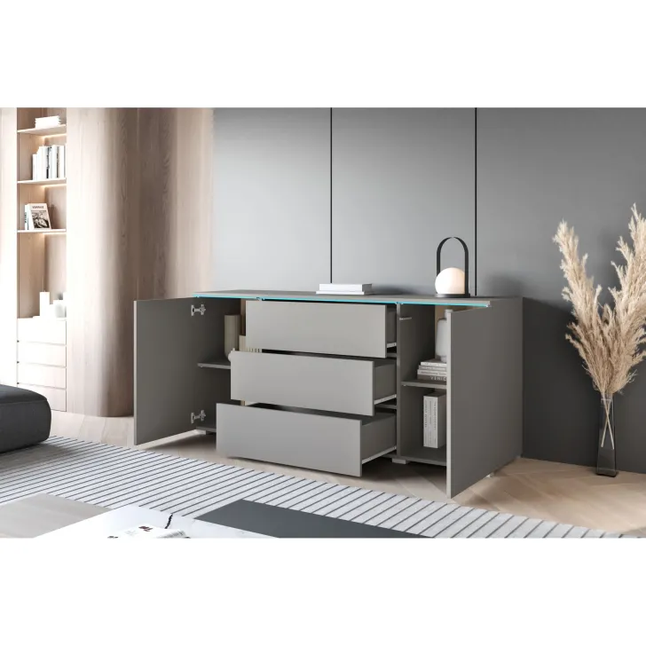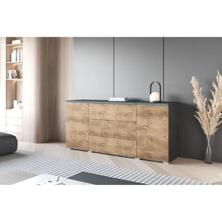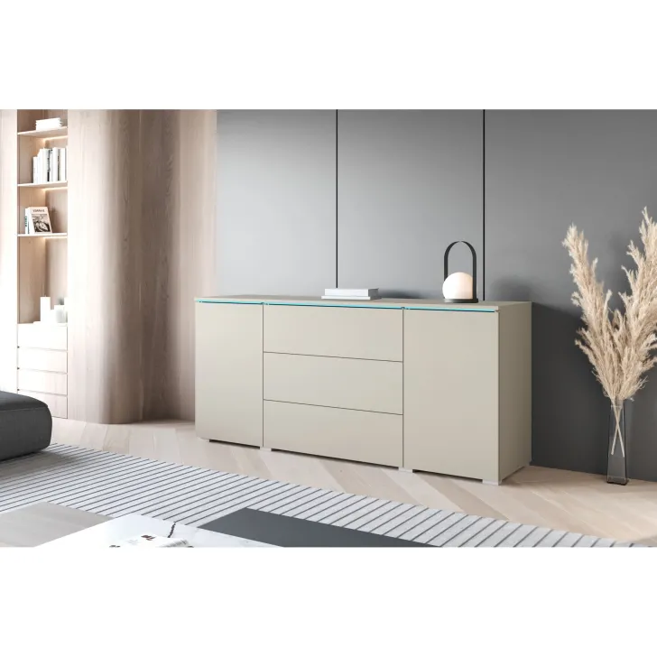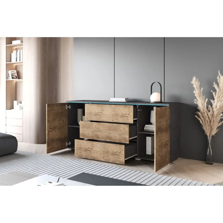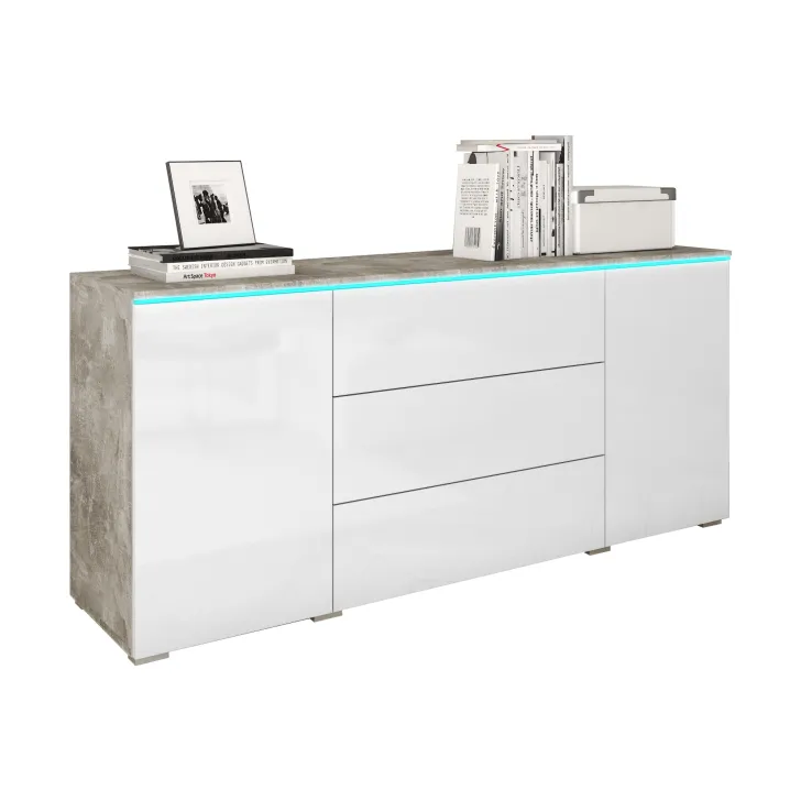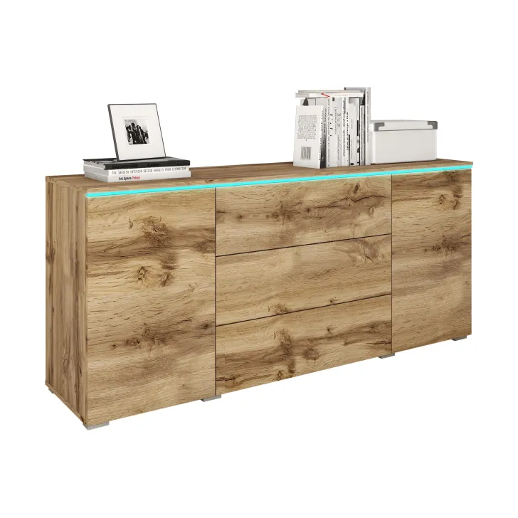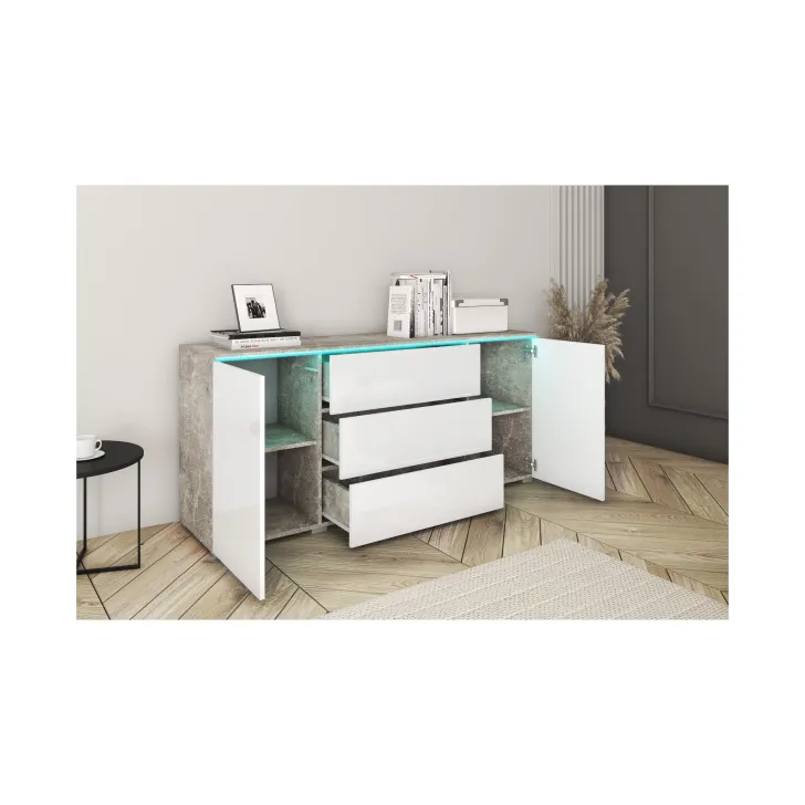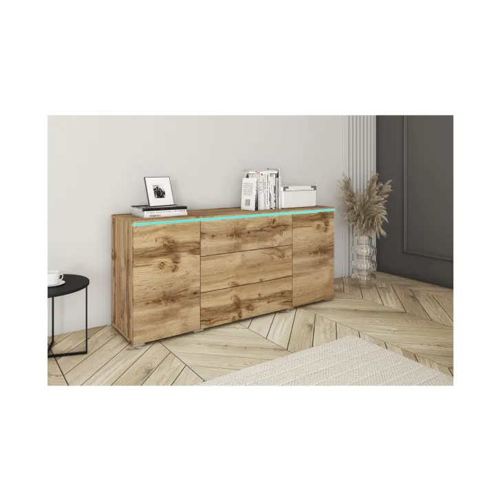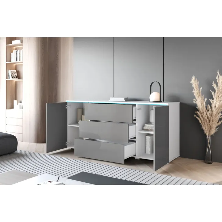 - Opcję dodatkową - oświetlenie LED (białe, zimne), które stanowi efektowne i praktyczne dopełnienie komody.