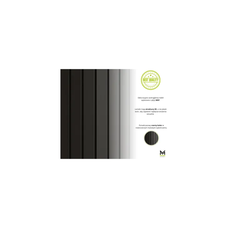 • Wysokiej jakości mebla wykonanego z płyty laminowanej o grubości 16 mm i boków MDF
