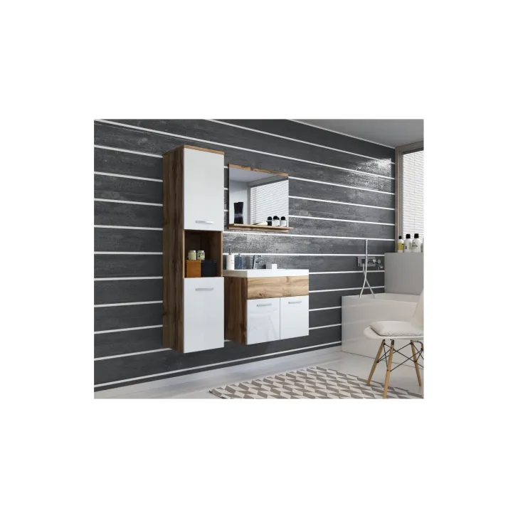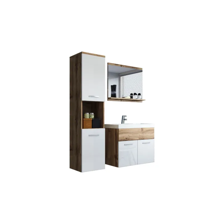 Komplet mebli łazienkowych "MONAL", dąb Wotan / biały połysk