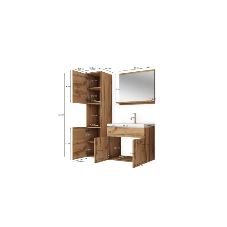 Wymiary Komplet mebli łazienkowych "MONAL", dąb Wotan / biały połysk: