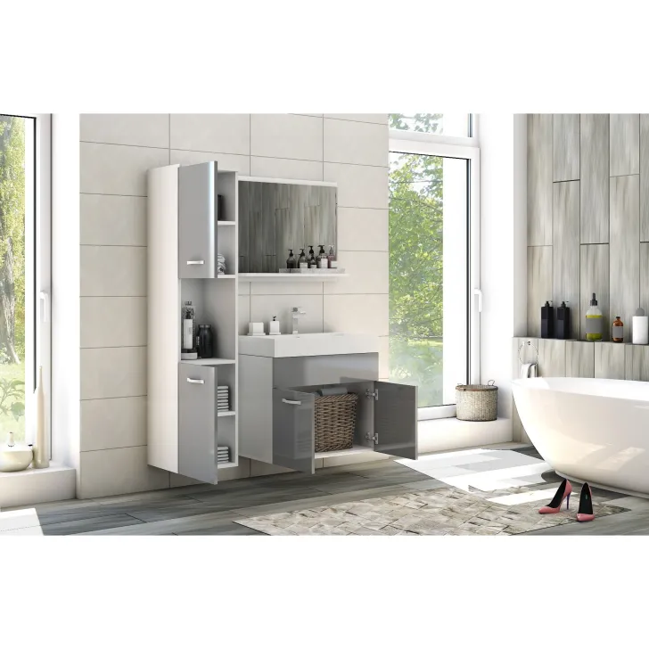 Komplet mebli łazienkowych w kolorze szary połysk - Montreal XL
