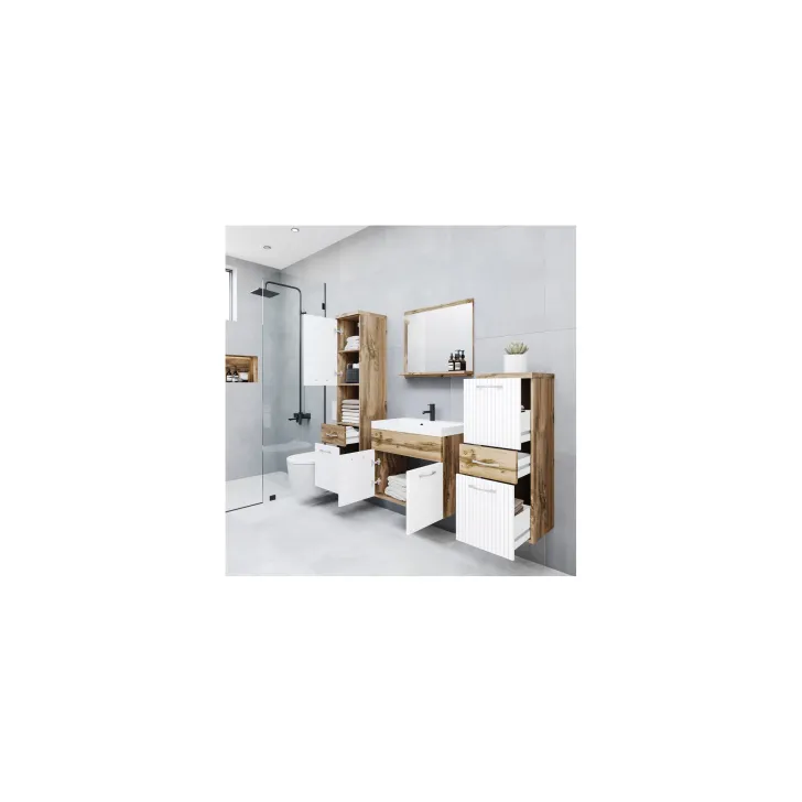 Meble łazienkowe "ALBA" dąb wotan / biały mat wzór ryfle