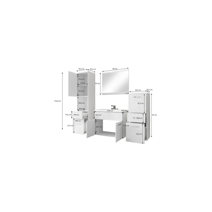 • Komplet mebli łazienkowych z wysokojakościowej laminowanej płyty meblowej