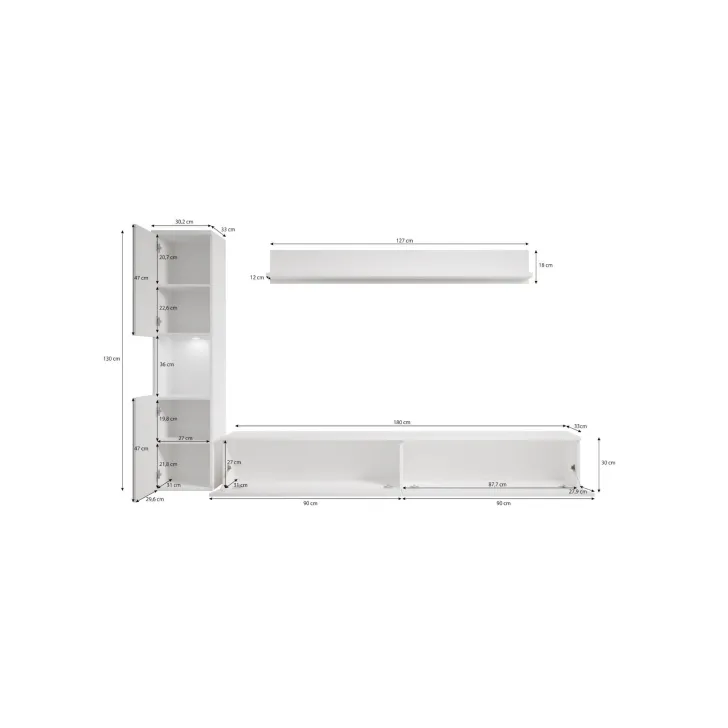 - Lowboard 180 cm - Wys. 30 x Szer. 180 x Gł. 33 cm / wys. w opcji stojącej + 2 cm nóżka