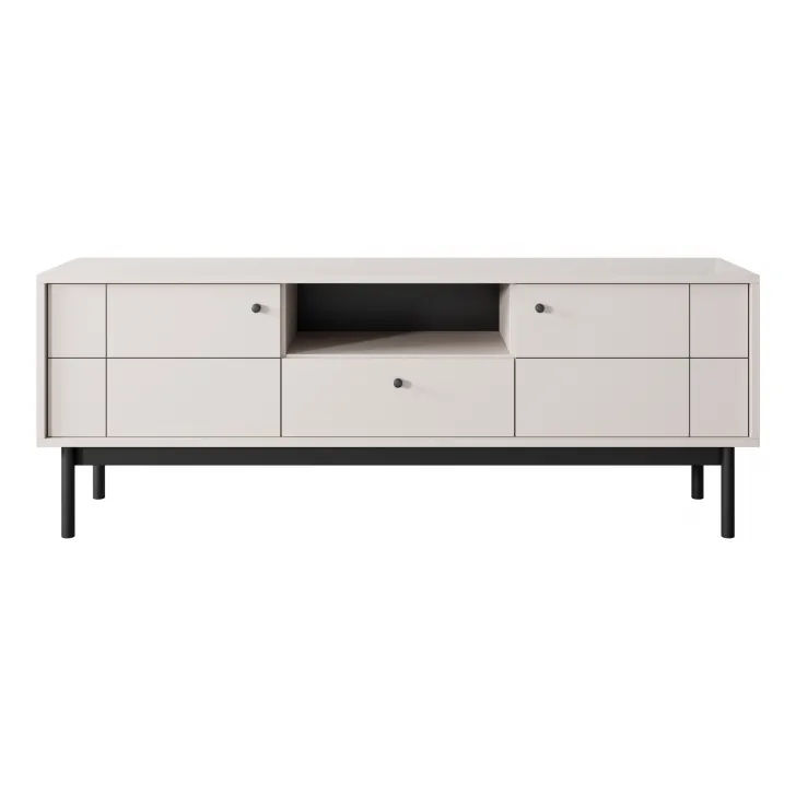 Stolik RTV JUKON jest wyposażony w dwie pojemne wnęki za pełnymi frontami drzwi oraz w praktyczną szufladę zlokalizowaną w centralnej części. Górna część mebla posiada dodatkową otwartą wnękę, która stanowi doskonałe miejsce na umieszczenie dekodera czy niewielkiego sprzętu audio.
