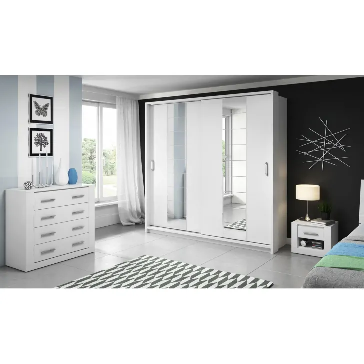 Szafa ERTA 14 biała to połączenie nowoczesnych rozwiązań konstrukcyjnych z wysoką funkcjonalnością. Szafa z kolekcji ERTA jest wyposażona w dwa przesuwane drzwi z lustrem na froncie. Takie rozwiązanie nie tylko optycznie powiększa przestrzeń, ale również pozwala skontrolować swój wygląd i obejrzeć cała sylwetkę. Dodatkowo, wewnątrz szafy znajdują się dwa drążki na ubrania oraz kilka pojemnych półek, które z pewnością ułatwią przechowanie rzeczy.