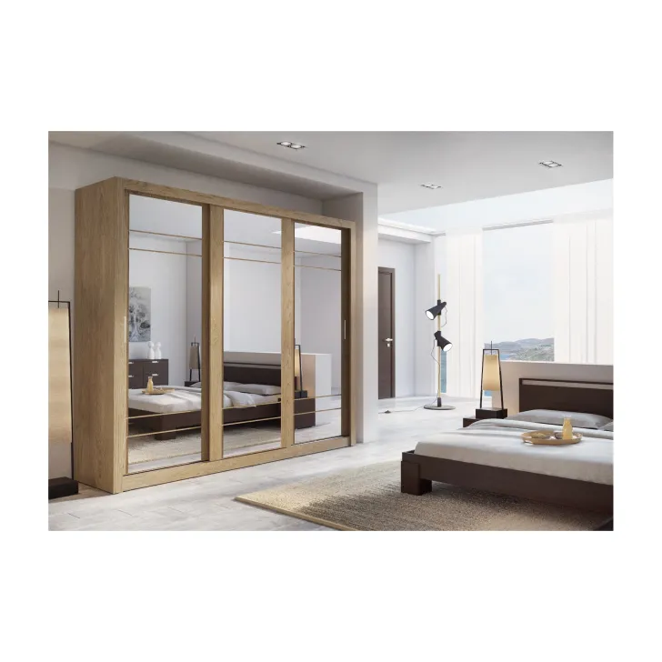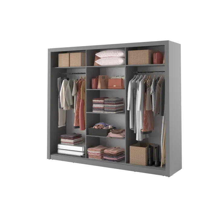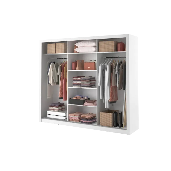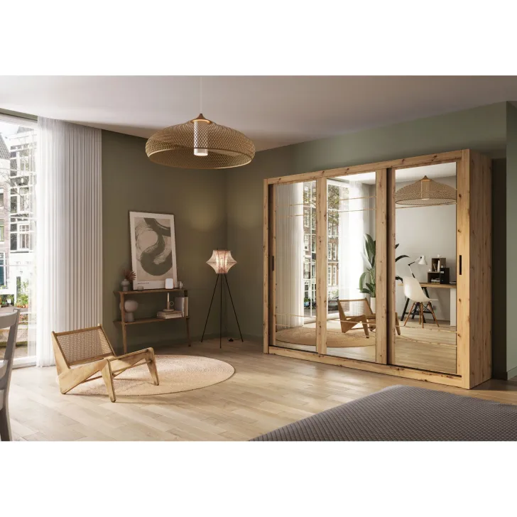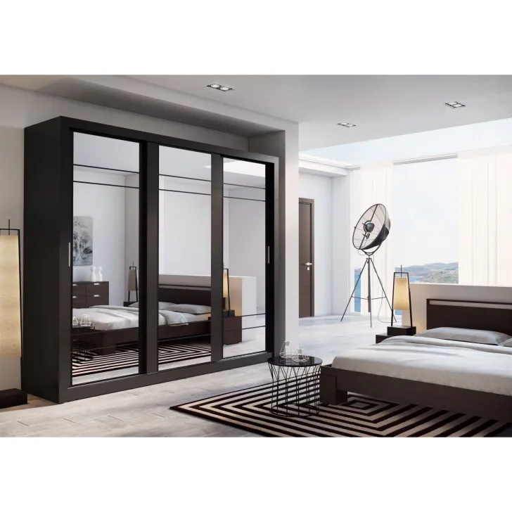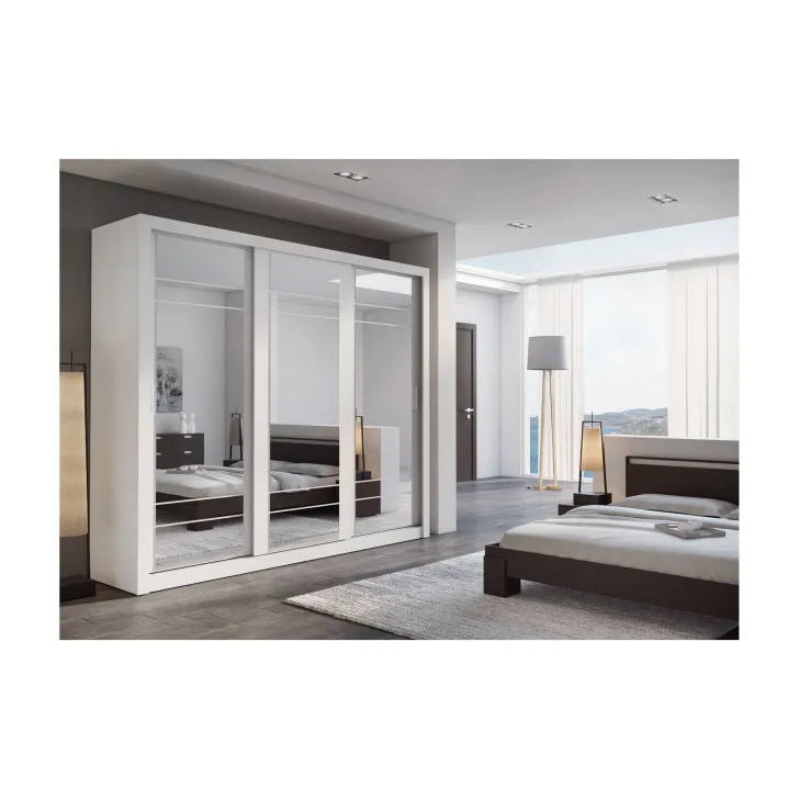 Szafa Erta 2 charakteryzuje się minimalistycznym wyglądem, który harmonijnie wpisuje się zarówno w nowoczesne, jak i klasycznie urządzone wnętrza. Dodatkowo dostępność różnych kolorów, zapewnia możliwość dopasowania do każdej aranżacji. Szafa posiada trzy przesuwne drzwi z lustrami, dzięki czemu optycznie powiększa przestrzeń i umożliwia wygodne przejrzenie się. Praktyczność tego mebla podkreśla system drzwi przesuwnych, zapewniający łatwy dostęp do przechowywanych w nim rzeczy.
