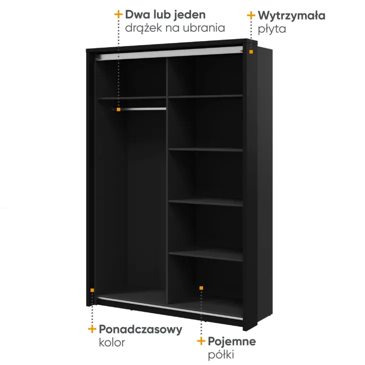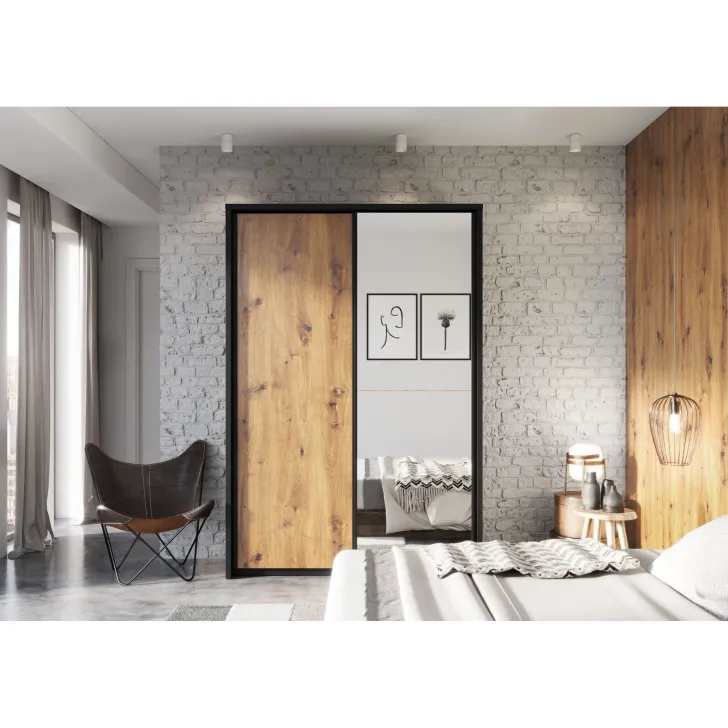 Wykreuj elegancje i porządek w swojej przestrzeni dzięki Szafie ERTA 21 w kolorze dąb artisan i czarnym. Stylowy, a zarazem funkcjonalny mebel, który został zaprojektowany z myślą o optymalnym przechowywaniu ubrań i akcesoriów. Dwie przesuwne drzwi oferują łatwy dostęp do zawartości szafy, a solidne wykonanie zapewnia trwałość na wiele lat.