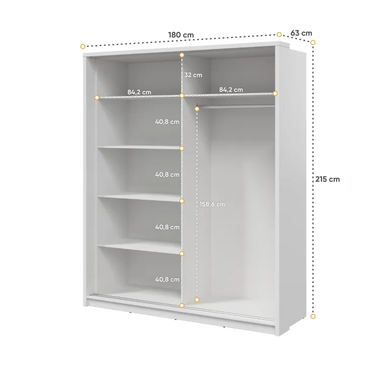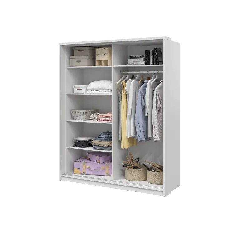 Ta obszerna szafa oferuje dużo miejsca do przechowywania ubrań i akcesoriów. Została zaprojektowana z myślą o wszystkim, co niezbędne do utrzymania porządku. To połączenie przemyślanej konstrukcji z minimalistycznym wyglądem i uniwersalnym kolorem, sprawia, że sprawdzi się zarówno w nowoczesnym, jak i klasycznym stylu wnętrza.