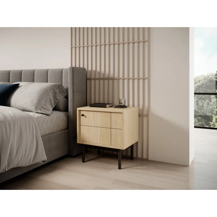 Kolekcja JUKON wyróżnia się prostym i jednocześnie ponadczasowym wyglądem. Delikatne ryflowanie na frontach, oparte na prostych liniach podkreśla charakter tego mebla. Dodatkowo, dwa możliwe wybarwienia (dąb linea i kaszmir) gwarantują, że Szafka nocna JUKON doskonale dostosuje się do każdego stylu i aranżacji Twojego wnętrza.