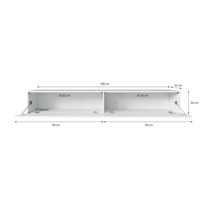 Ogromną zaletą Szafki pod telewizor DIDI 180 cm jest także możliwość wykorzystania jej zarówno jako mebla wiszącego, jak i stojącego - a jej nośność to kolejny atut. Wymagania dotyczące maksymalnego obciążenia wynoszą 20 kg dla wersji wiszącej i nawet 40 kg dla wersji stojącej.