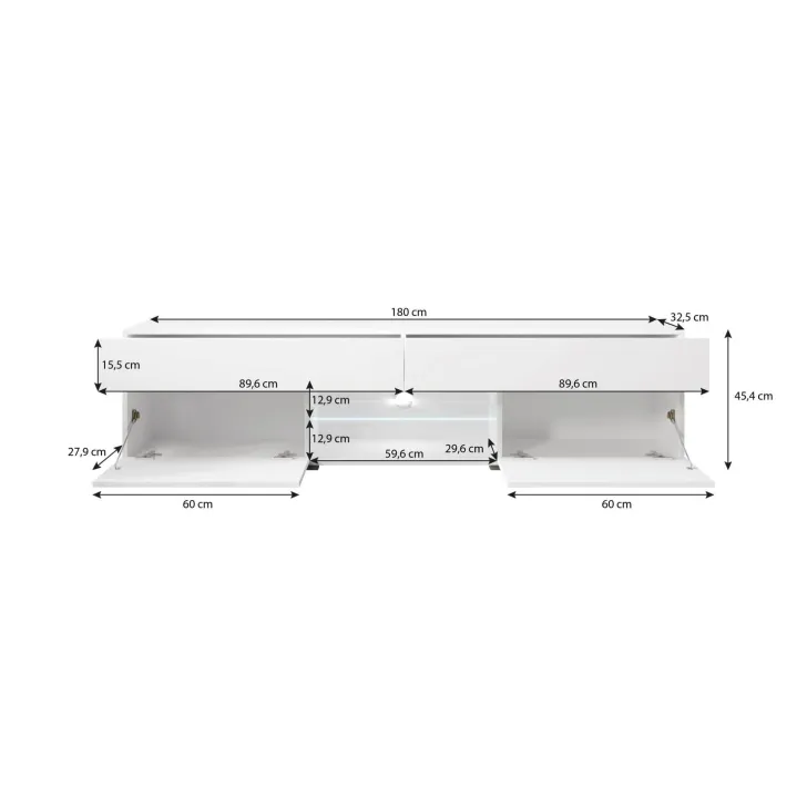 Wymiary Szafka RTV CARE 180 cm biały połysk/biały: