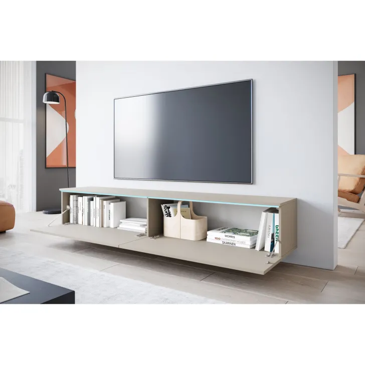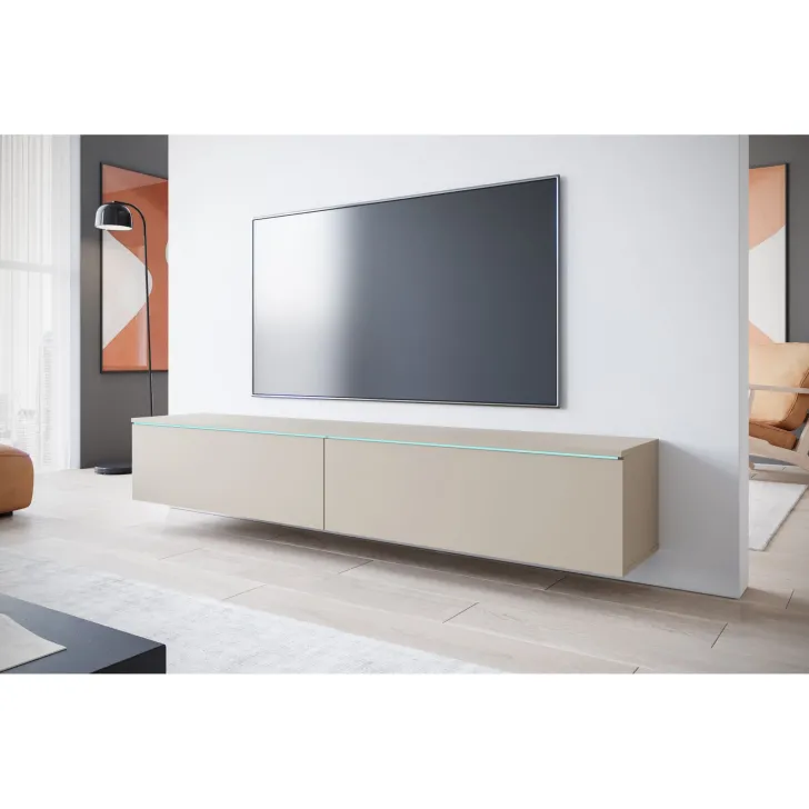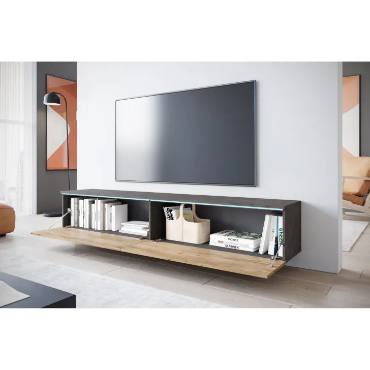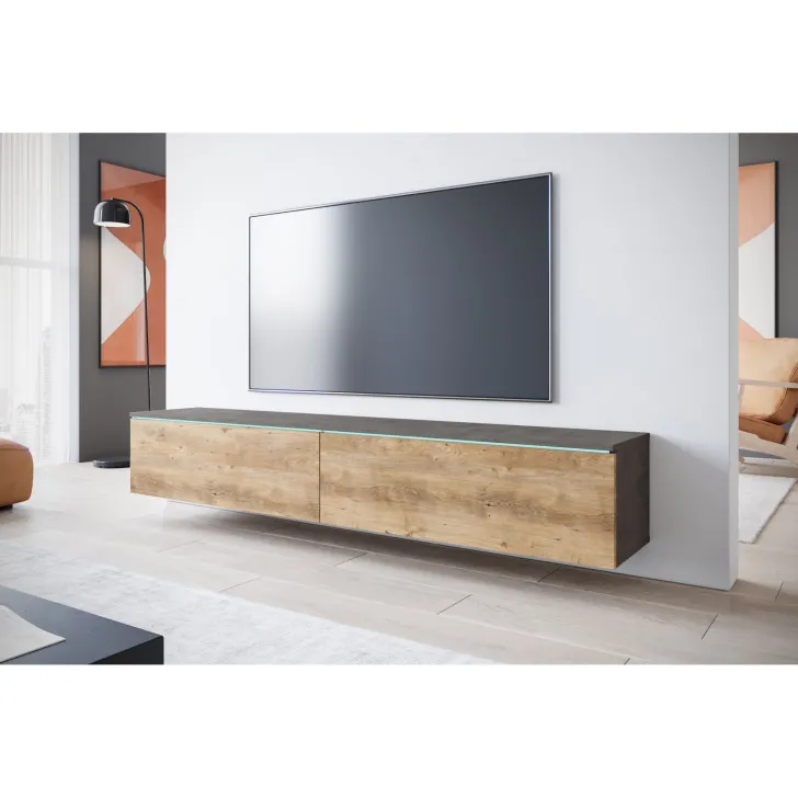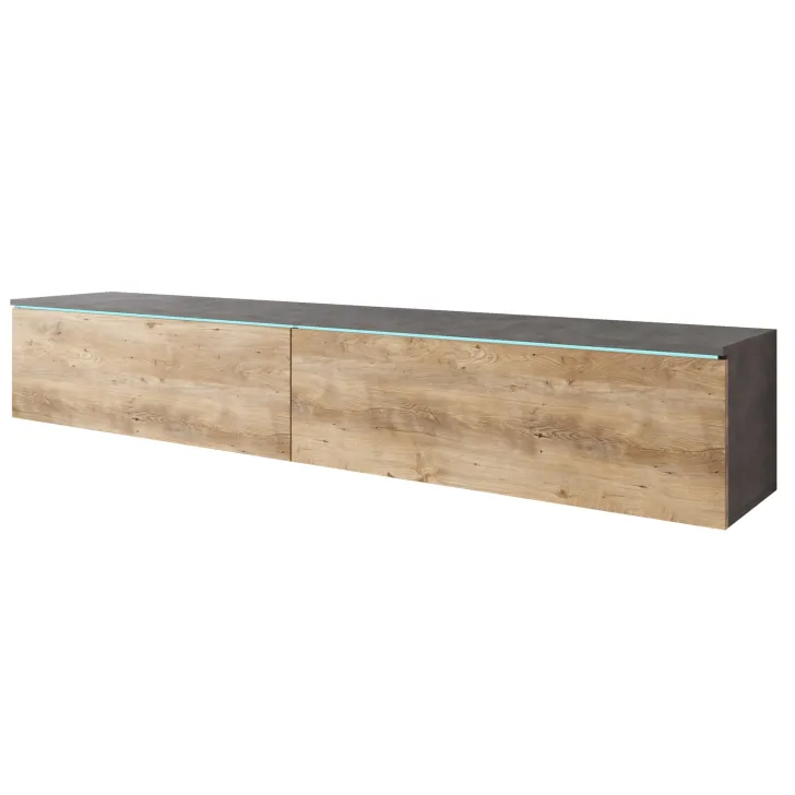 Właściwie dobrana Szafka RTV DONNA 180 cm wprowadzi do Twojego salonu czy pokoju młodzieżowego zdecydowanie więcej nowoczesności i funkcjonalności. Szafka może służyć zarówno jako mebel stojący, co jest idealnym rozwiązaniem dla miłośników klasycznych aranżacji, jak i wiszący. Umocowana na ścianie szafka niesie ze sobą nutę nowoczesności oraz wizualną lekkość.