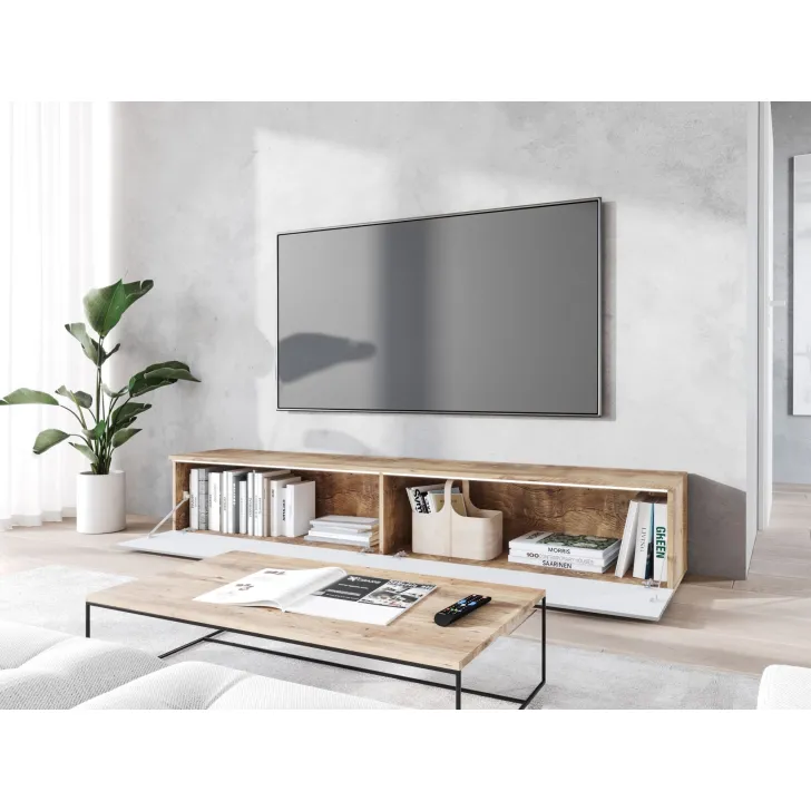 Szafka RTV CARE 180 cm biały połysk/biały