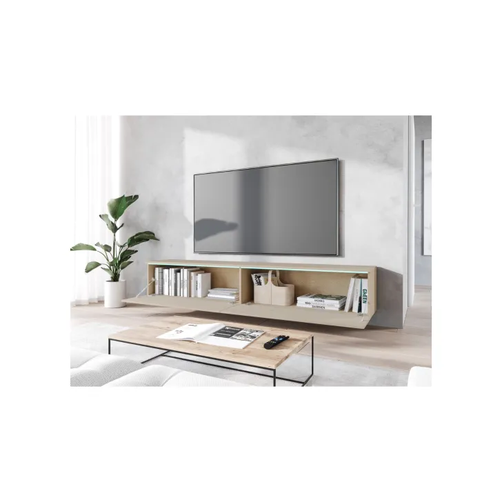• Oświetlenie LED: chłodna, biała iluminacja podkreśla elegancję mebla i tworzy wyjątkową atmosferę w salonie, szczególnie wieczorami.
