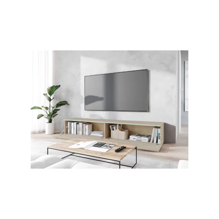 Co warto wiedzieć o Szafka RTV 180 cm w kolorze dąb Gaja z wzorem lameli