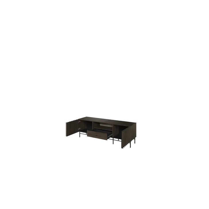 Specyficzny układ przestrzeni wewnątrz szafki RTV Impera pozwala na wygodne przechowywanie różnego rodzaju sprzętów i akcesoriów RTV - od konsoli, przez płyty, dekodery i pady, aż po inne drobiazgi, które zawsze będziesz mieć pod ręką. Zaletą tej szafki jest również praktyczna szuflada, która znakomicie sprawdzi się do przechowywania mniejszych przedmiotów.