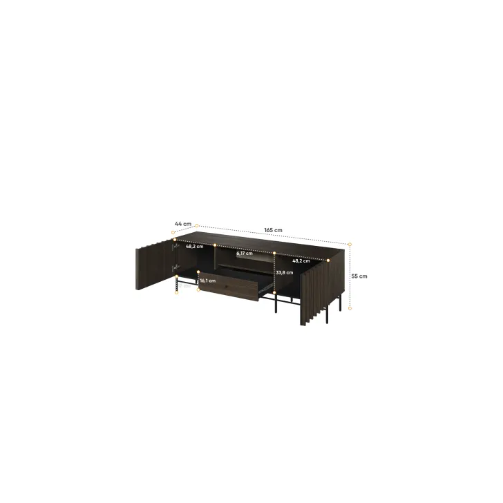 Szafka RTV z kolekcji Impera 165 cm to doskonałe połączenie nowoczesności i funkcjonalności, które przyciąga uwagę swoim stylowym wyglądem oraz praktyczną konstrukcją. Jej wyrazisty i elegancki design, czyni ją nie tylko praktycznym meblem, ale również wyróżniającym się elementem wystroju wnętrza.