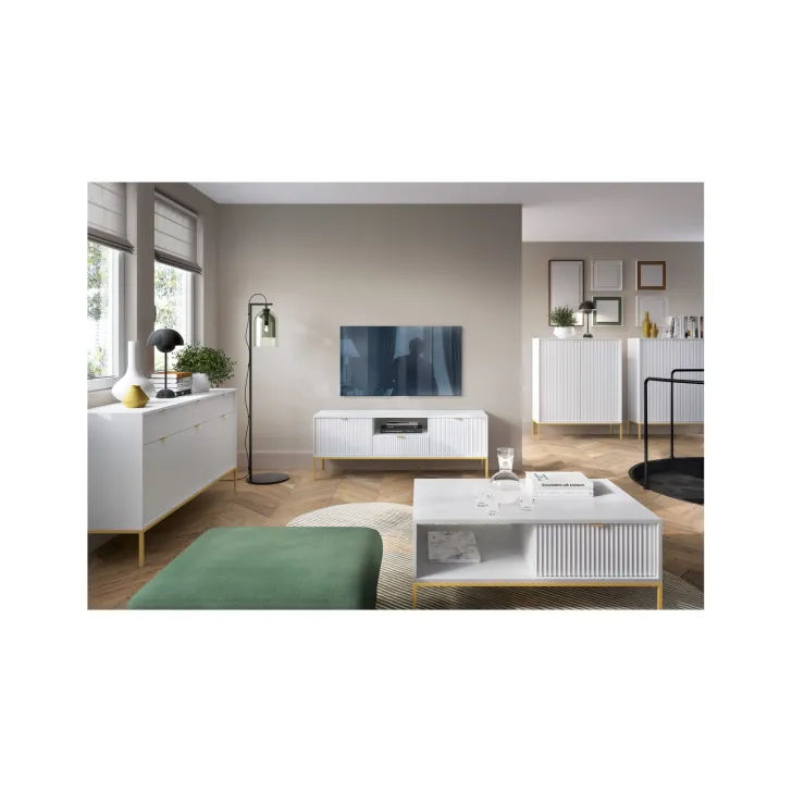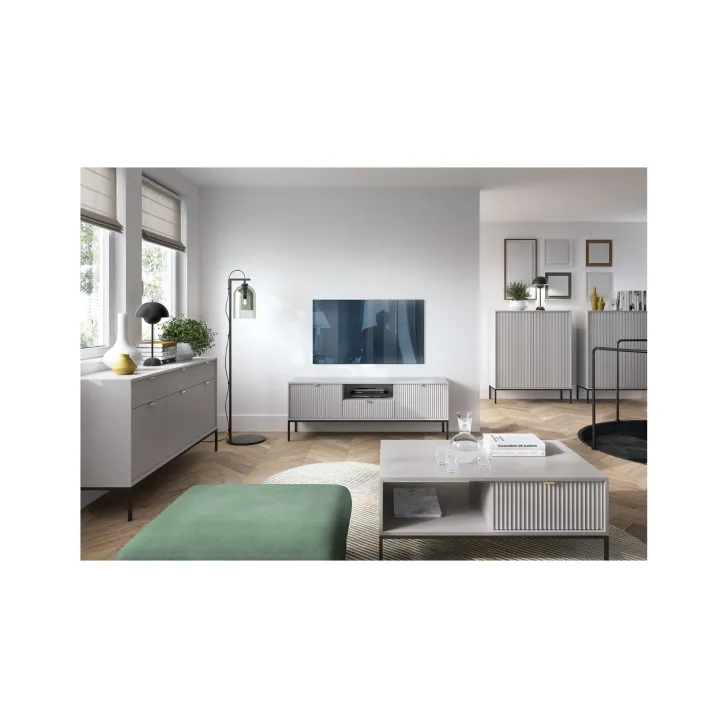 Odśwież wygląd swojego salonu z elegancką i nowoczesną Szafką RTV "NOVA", która stanowi doskonałe połączenie funkcjonalności i stylu. Ta wyjątkowa szafka, wyposażona w praktyczną szufladę, jest nie tylko estetycznie przyjemna dla oka, ale także doskonale spełnia swoje zadanie.