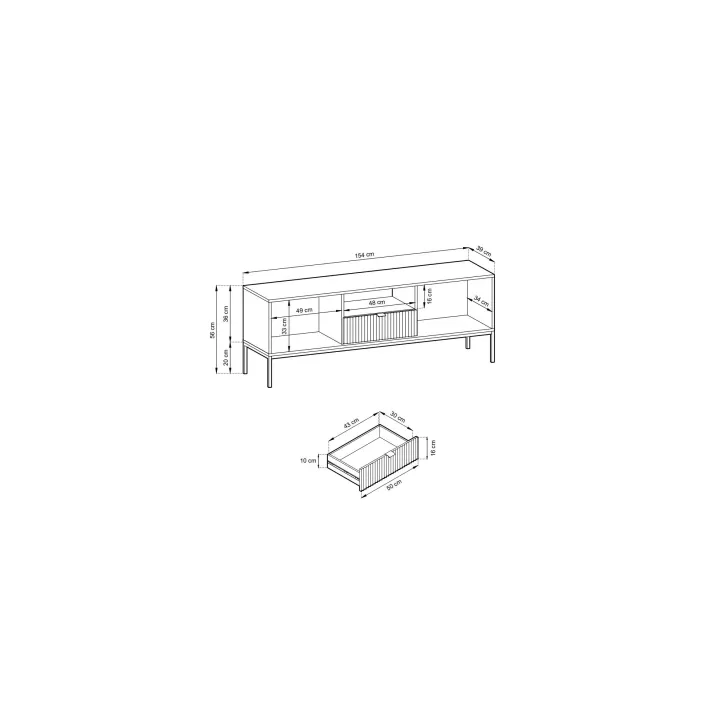 Wymiary Szafka RTV "NOVA" na metalowych nogach: