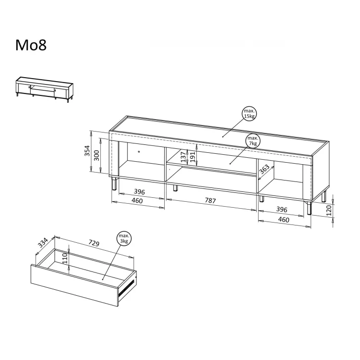 Wymiary Szafka TV "ASSO 8" wisząca lub stojąca: