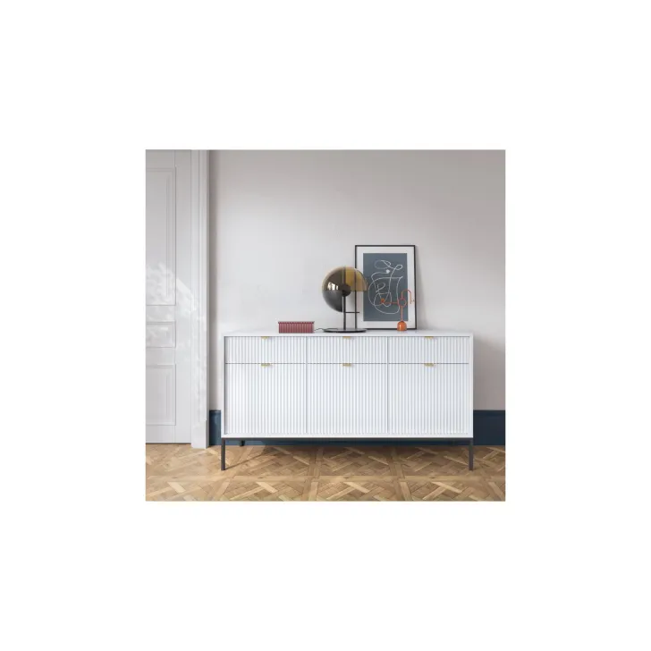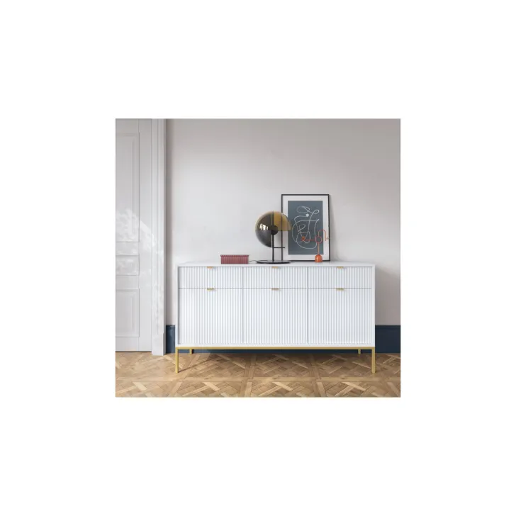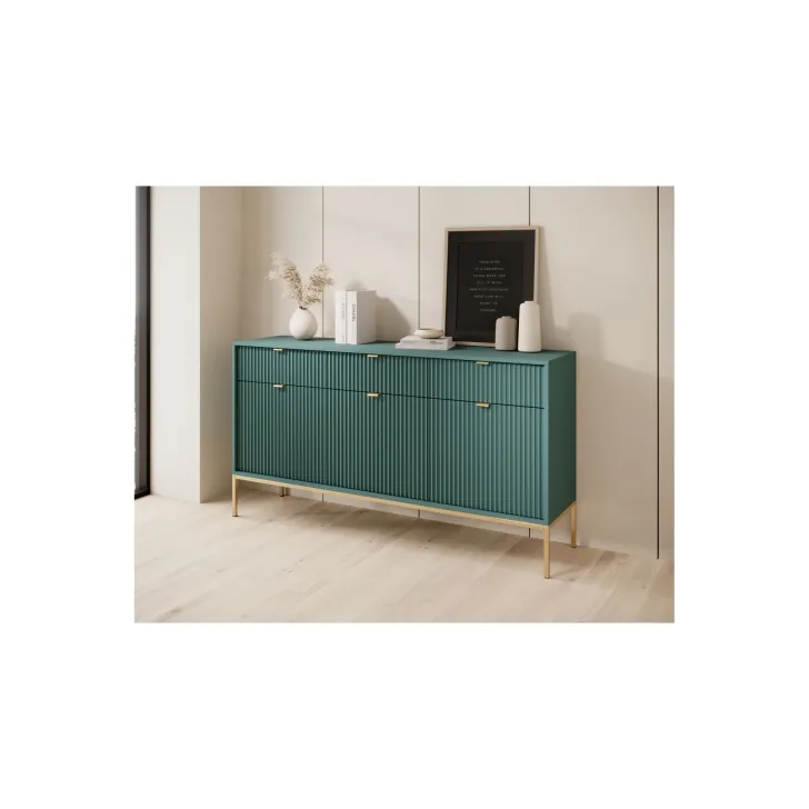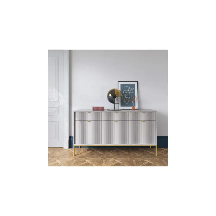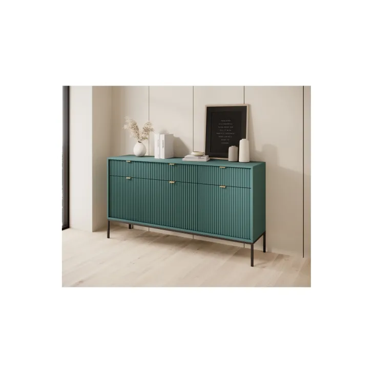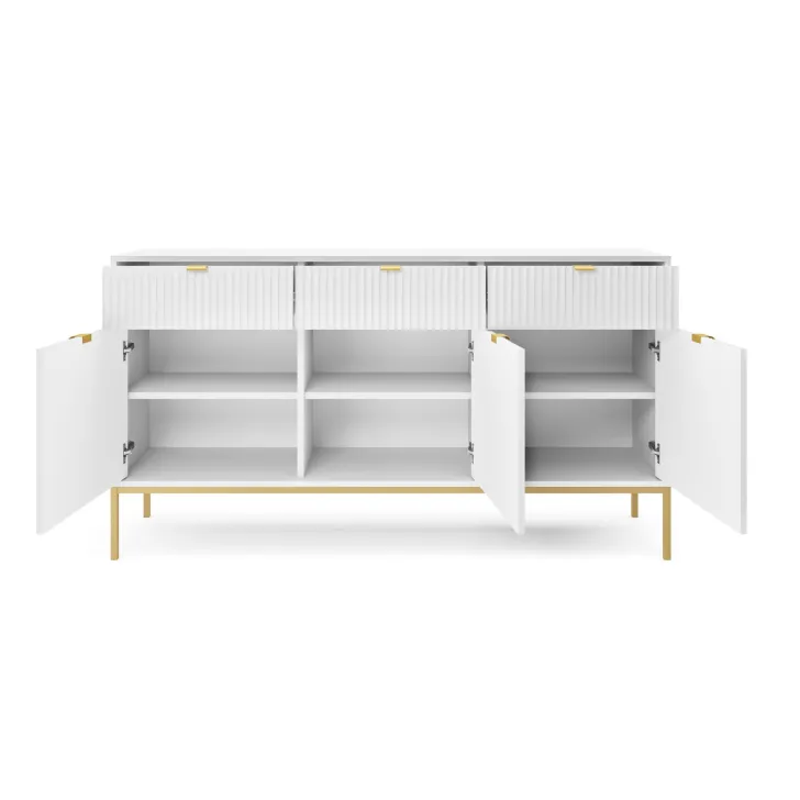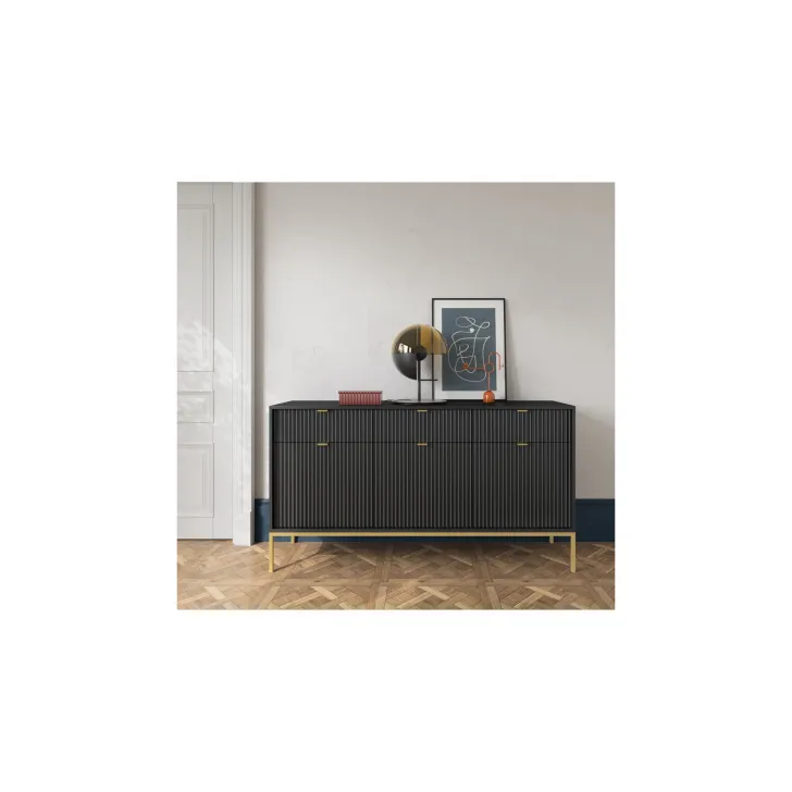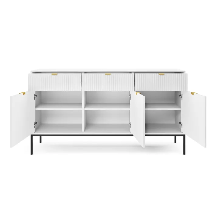 Zaprezentuj swój dom w najlepszym świetle dzięki nowoczesnej, wyrafinowanej i eleganckiej komodzie "NOVA" na metalowych nogach. Idealna do pokoju lub salonu, niezależnie od stylu wnętrza, ta komoda z drzwiami i szufladami najwyższej jakości łączy funkcjonalność z wyróżniającym się stylem.