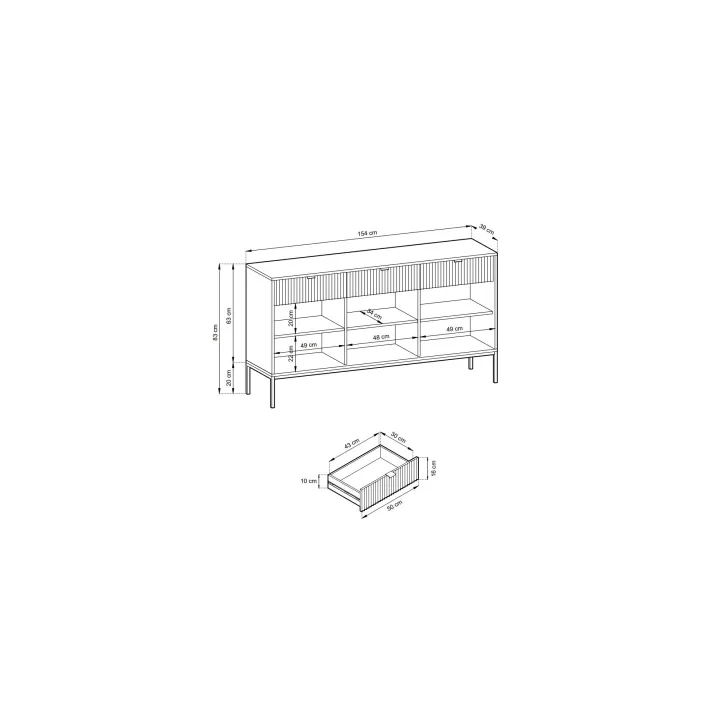 Wymiary Szeroka komoda "NOVA" na metalowych nogach