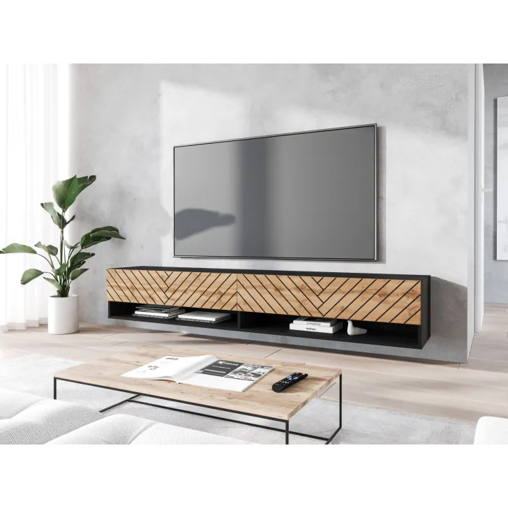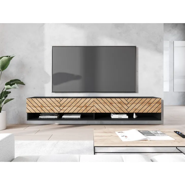 Wisząca lub stojąca szafka RTV "ANNE", 180 cm, front MDF wzór 3D