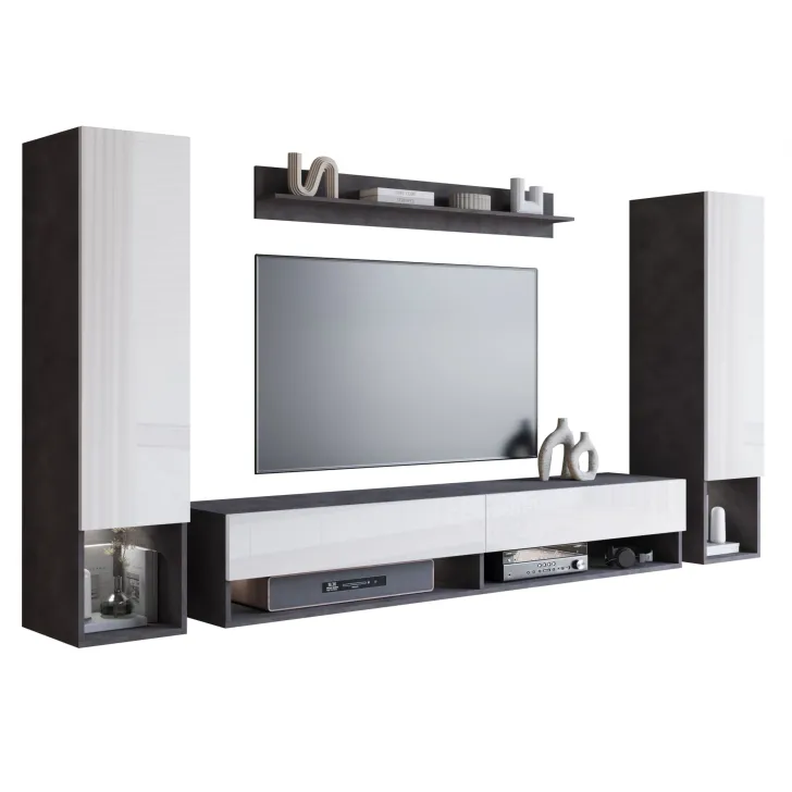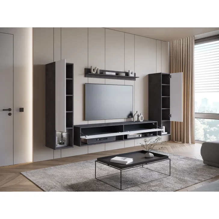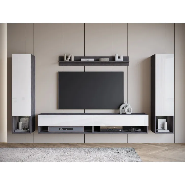 Wisząca meblościanka AMY II stanowi perfekcyjne dopełnienie Twojego salonu. Meblościanka, która nie tylko jest elegancka, ale też praktyczna. Zapewnia wiele pomysłów na konfigurację przestrzeni oraz organizację rozmaitych przedmiotów, niezależnie od ich wielkości i przeznaczenia. Odkryj jej unikalne funkcje!