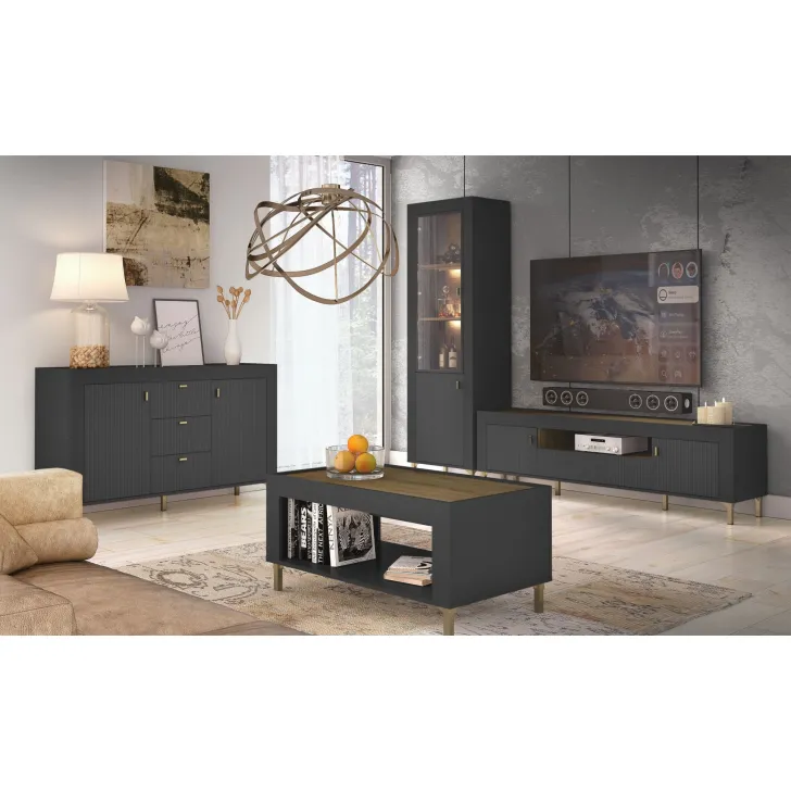 Spojrzyj na Witrynę Asso 3, która niemal hipnotyzuje swoją nowoczesnością i przestrzennością. To dzieło sztuki, z której możesz korzystać na co dzień, wkomponowując je idealnie zarówno do salonu, jak i jadalni, a nawet do biura, zyskując komfort użytkowania i niezwykły wygląd pomieszczenia.
