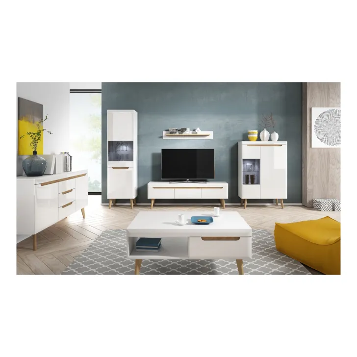 - Biały połysk i dąb artisan to dwa dostępne kolory, które idealnie wpasują się w każdą aranżację wnętrza, niezależnie od tego, czy jest ono modernistyczne, czy tradycyjne.