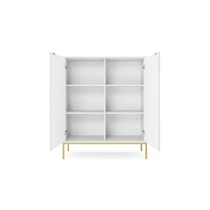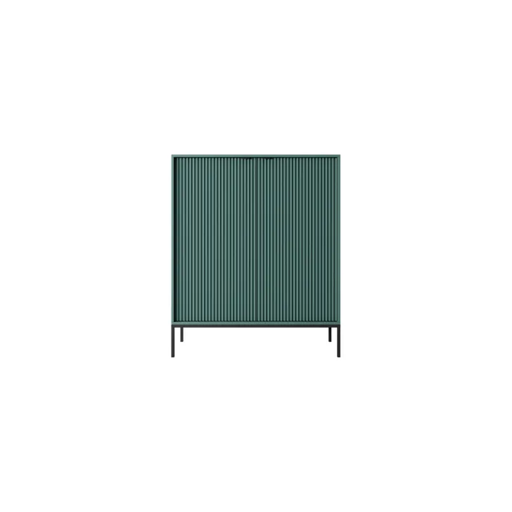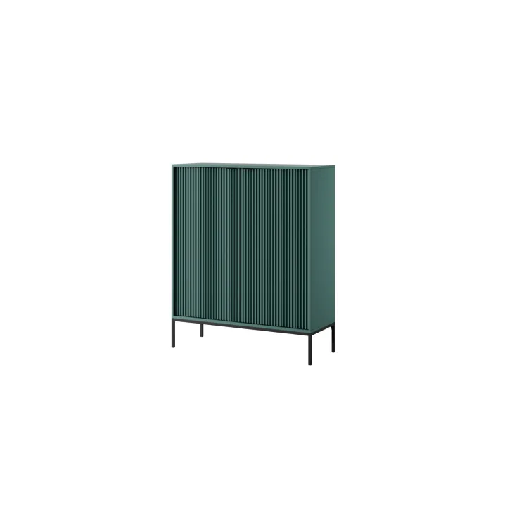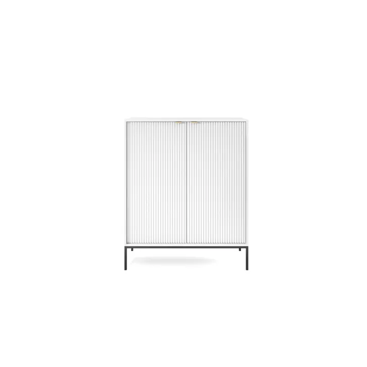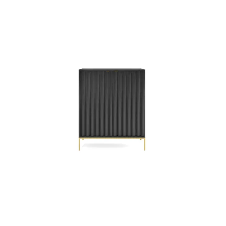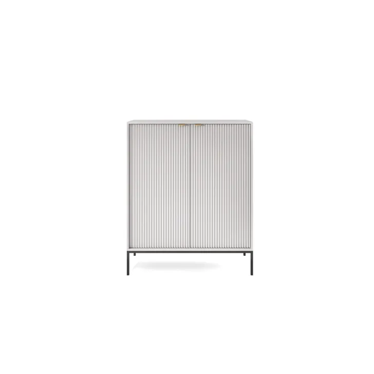 Komoda ta wyróżnia się eleganckimi metalowymi nogami, które dodają jej stabilności i nienagannego wyglądu. Fronty wykonane są z wysokiej jakości MDF, oferując ładny, estetyczny wygląd.