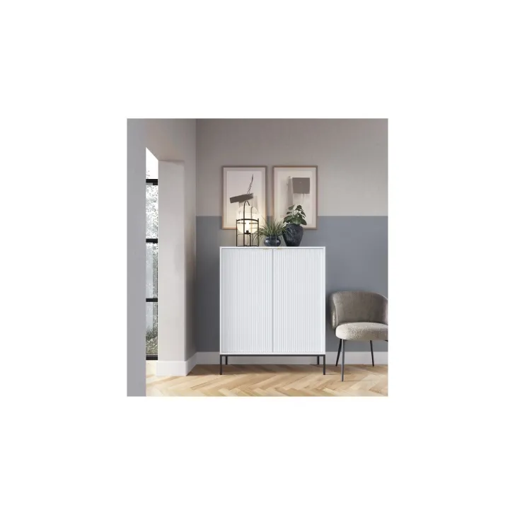 Wysoka komoda "NOVA" charakteryzuje się wyjątkową jakością wykonania. Solidna konstrukcja opiera się na płycie laminowanej, co gwarantuje długowieczność i niezawodność produktu. Krawędzie mebla pokryte są obrzeżem ABS, co zabezpiecza przed ewentualnymi uszkodzeniami wynikającymi z codziennego użytkowania.