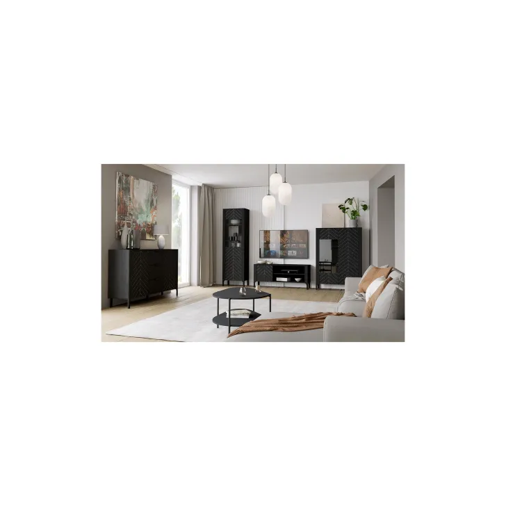 Zapraszamy do poznania Wysoka Witryna "MONZA" 4 – efektywnego i praktycznego elementu dekoracyjnego oraz funkcjonalnego. To niewątpliwie nie tylko mebel, ale także wyraźny akcent stylu i elegancji każdego pomieszczenia. Możesz go perfekcyjnie umieścić nie tylko w salonie, ale także w jadalni czy pokoju dziennym. Wykonana z wysokiej jakości płyty laminowanej z unikalnymi frontami zdobionymi wzorem "jodełka", dzięki czemu twoje wnętrze zyska rzadko spotykany, przytulny i elegancki charakter. Dostępna w dwóch stylowych kolorach, czarnym (Painflow) i kaszmir, aby sprostać różnym gustom i preferencjom naszych klientów. Podkreśl swoje unikalne styl estetyczne i przechowuj swoje ulubione przedmioty w miejscach, które są dosłownie w zasięgu wzroku. Witryna posiada drzwi z przeszkleniem, które pozwalają świetnie wyeksponować cenne przedmioty, elementy dekoracyjne czy zastawę stołową. Dodatkowo, w dolnej części, za pełnym frontem drzwi, możesz ukryć wszystko, co chcesz mieć pod ręką, ale chcesz zachować porządek i elegancję pomieszczenia.